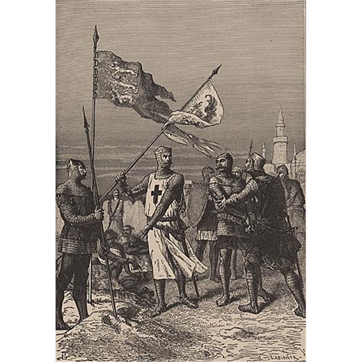 ORIGINAL Antique PRINT scene- RICHARD PLANTAGENET TAKING DOWN THE BANNER OF LEOPOLD (NOT A REPRODUCTION) that was createdand produced, using a wood cut (Scene carved out of a wood block). One of several that were found in an 1858 Southern Antebellum mansion, all being offered for sale. Condition is excellent PLUS! Measures 7.5in x 10in.