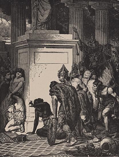 ORIGINAL Antique PRINT scene- ROME PLUNDERED BY THE GAULS (NOT A REPRODUCTION) that was createdand produced, using a wood cut (Scene carved out of a wood block). One of several that were found in an 1858 Southern Antebellum mansion, all being offered for sale. Condition is excellent PLUS! Measures 7.5in x 10in.