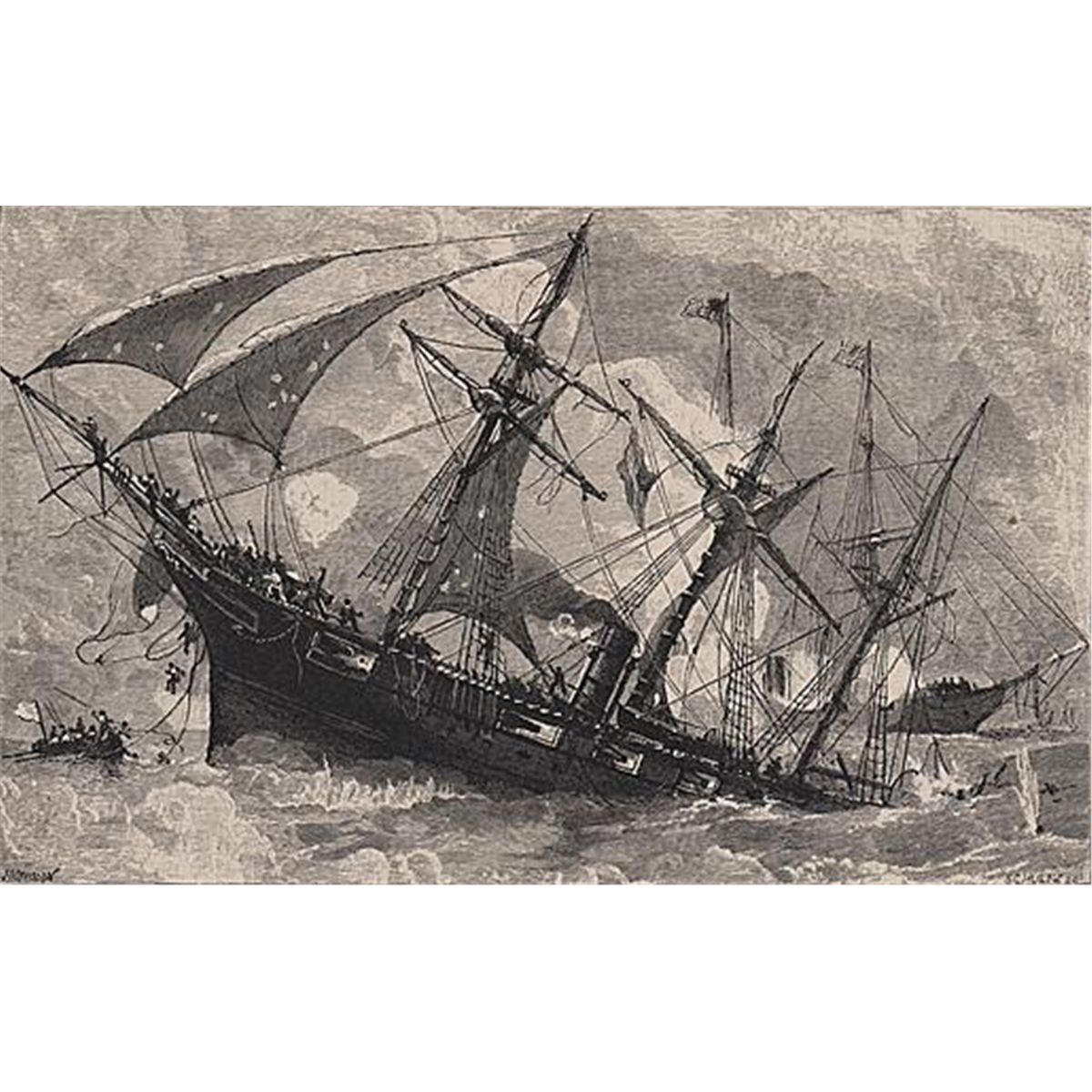 ORIGINAL Antique PRINT scene- SINKING OF THE ALABAMA (NOT A REPRODUCTION) that was createdand produced, using a wood cut (Scene carved out of a wood block). One of several that were found in an 1858 Southern Antebellum mansion, all being offered for sale. Condition is excellent PLUS! Measures 6.5in x 9.75in.
