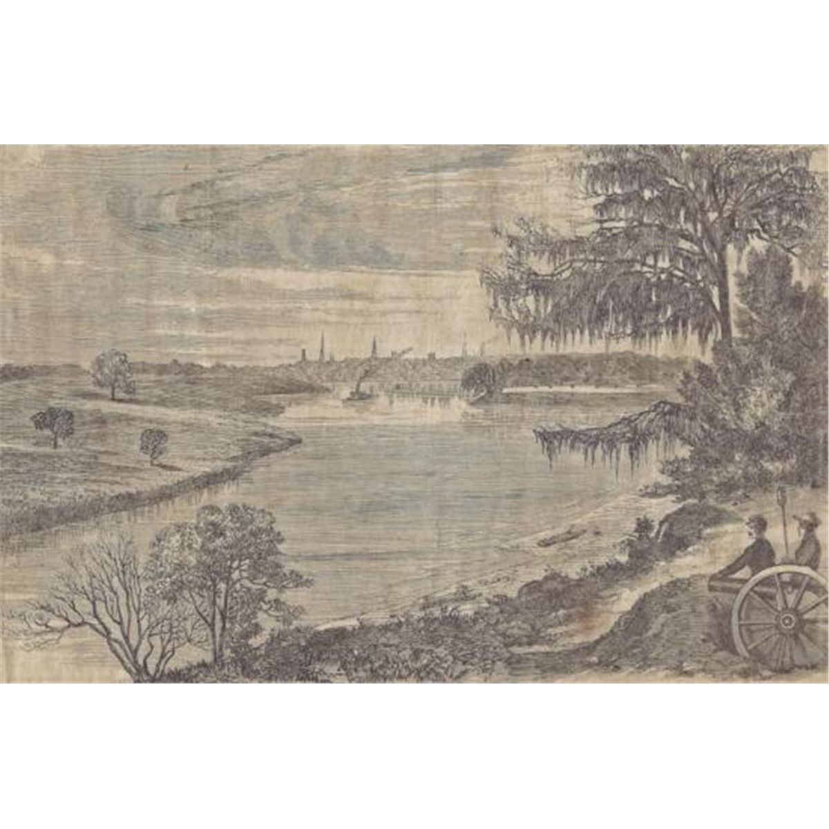 ORIGINAL Antique PRINT scene Shermans Campaign, View of the City of Savannah, GA (NOT A REPRODUCTION) that was createdand produced, using a wood cut (Scene carved out of a wood block). One of several that were found in an 1858 Southern Antebellum mansion, all being offered for sale. Condition is excellent PLUS! mwf2159