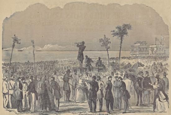 ORIGINAL Antique PRINT scene The Crowd on the Battery, Charleston, SC Watching the Combat (NOT A REPRODUCTION) that was createdand produced, using a wood cut (Scene carved out of a wood block). One of several that were found in an 1858 Southern Antebellum mansion, all being offered for sale. Condition is excellent PLUS! mwf2157