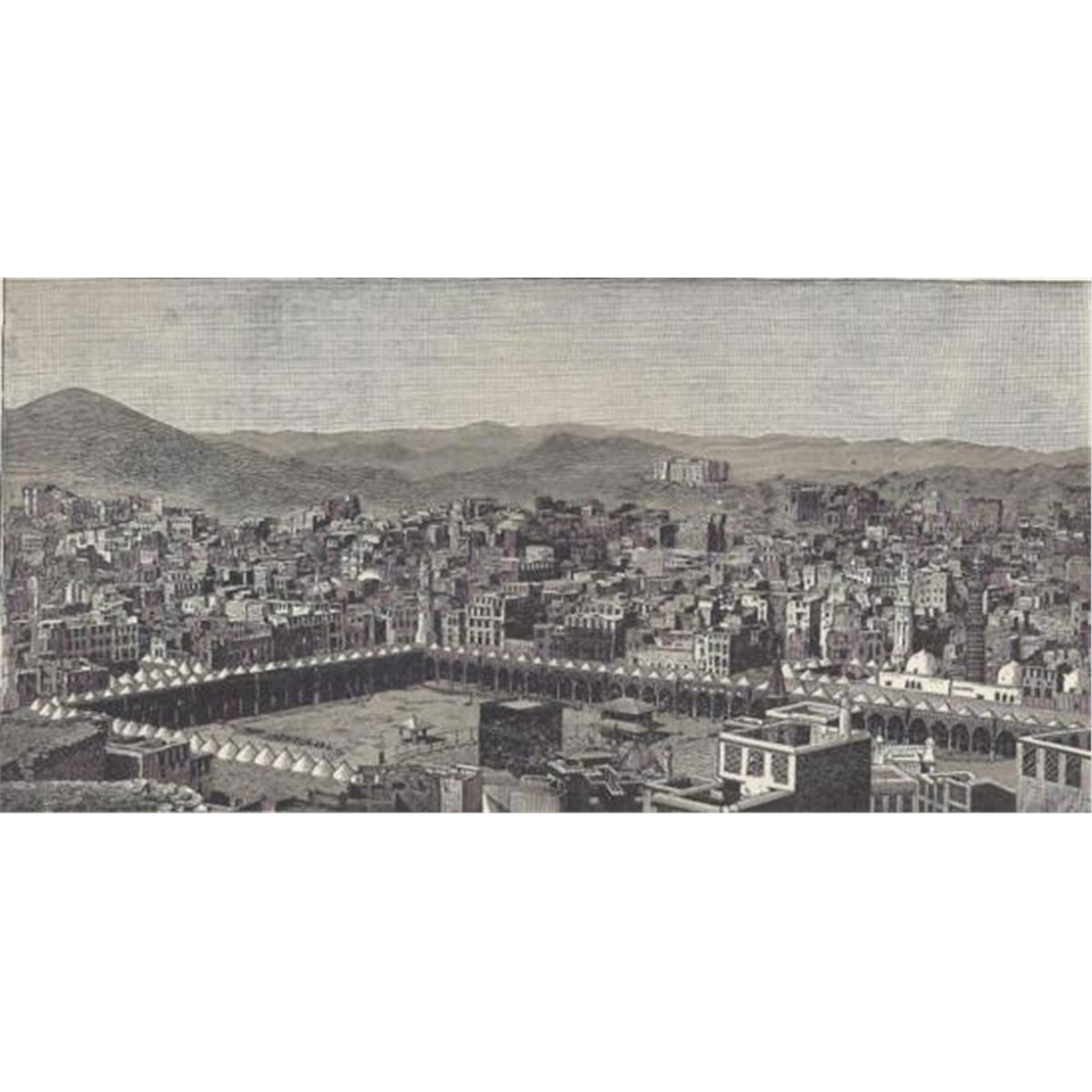 ORIGINAL Antique PRINT scene- VIEW OF MECCA (NOT A REPRODUCTION) that was createdand produced, using a wood cut (Scene carved out of a wood block). One of several that were found in an 1858 Southern Antebellum mansion, all being offered for sale. Condition is excellent PLUS! Measures 7.5in x 10in.