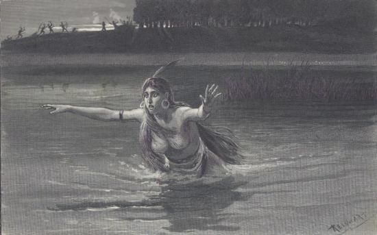 ORIGINAL Antique PRINT scene- WEETAMOO SWIMMING THE MATAPOISET (NOT A REPRODUCTION) that was createdand produced, using a wood cut (Scene carved out of a wood block). One of several that were found in an 1858 Southern Antebellum mansion, all being offered for sale. Condition is excellent PLUS! Measures 6.5in x 9.75in.