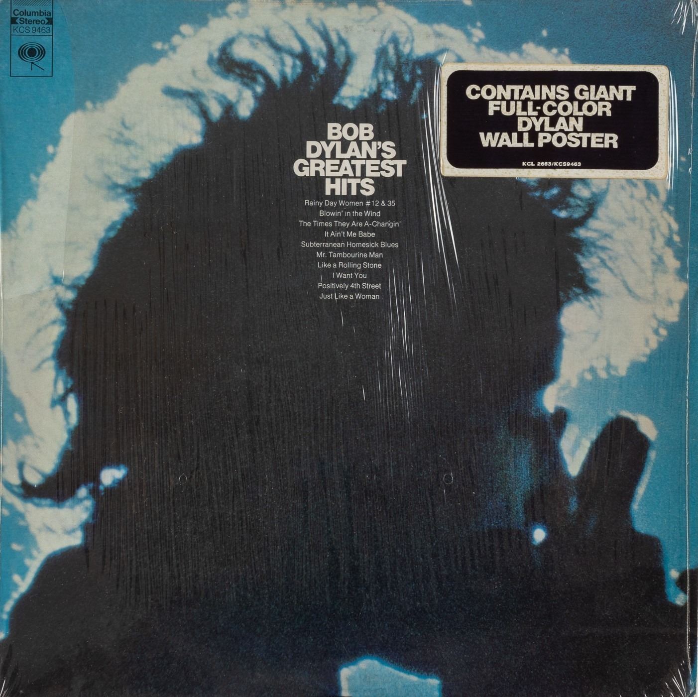 Original1967 Bob Dylan poster by Milton Glaser (1929-2020), 22 x 33 inches. Included with lot is the original 'Greatest Hits' album it came. Very good.