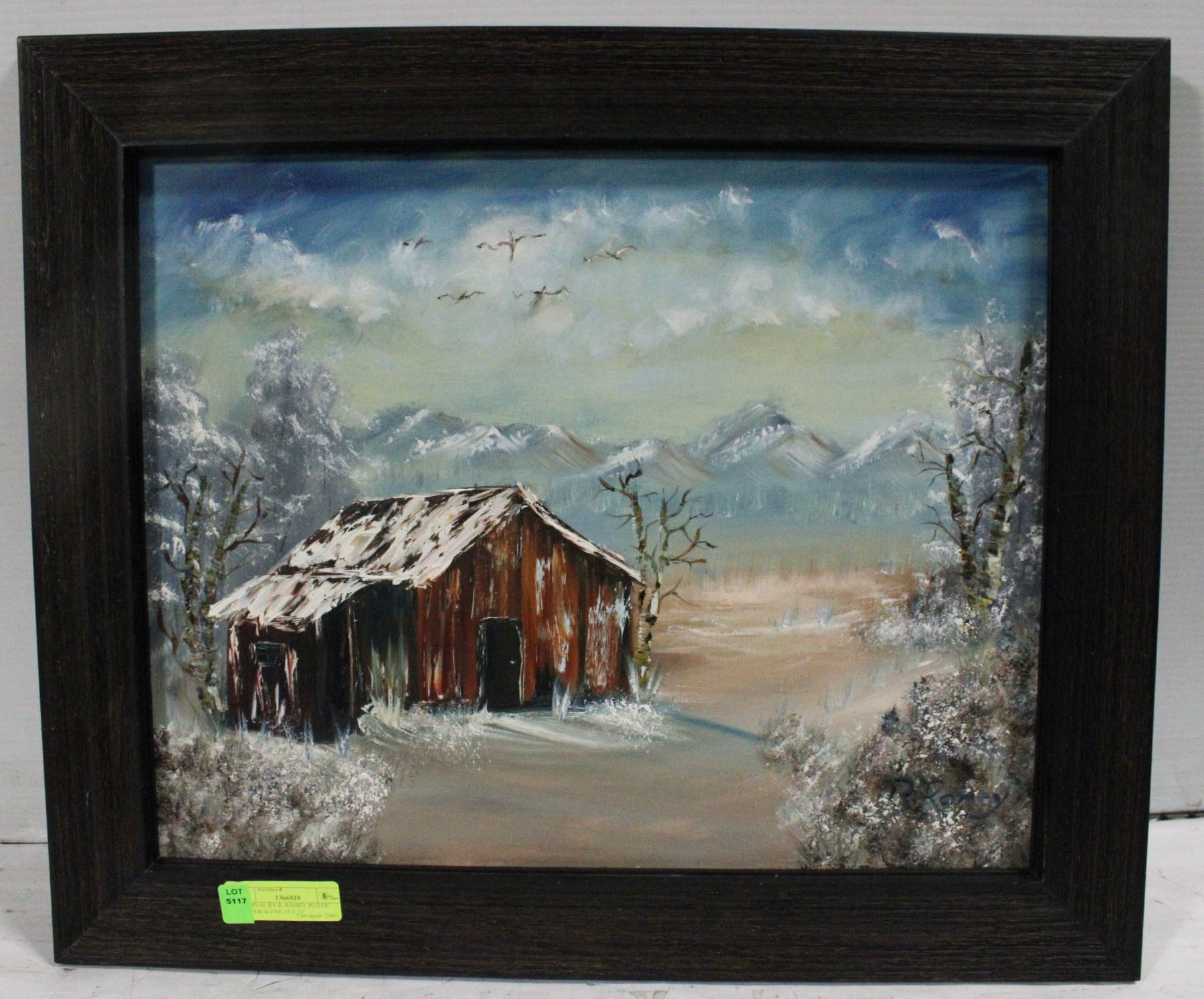 ORIGINAL BY R. RAMEY RUSTIC WINTER SCENE 25 X 21"