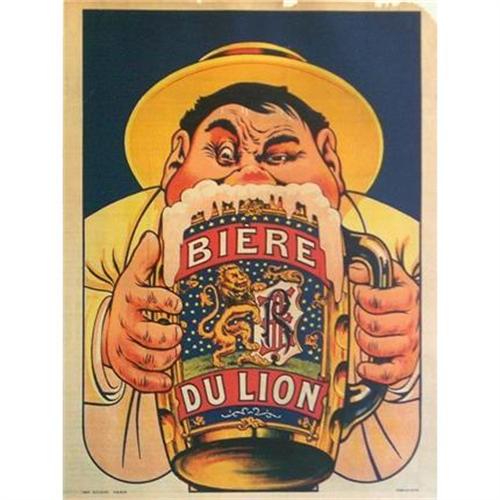 ORIGINAL FRENCH BEER POSTER FROM THE 1900-1925 PERIOD PROMOTING "BIERE DU LION". EXCELLENT GRAPHIC.31.25" X 24". CONSERVATION MOUNTED ON CANVAS-THE INDUSTRY STANDARD FOR PRESERVATION. INSURANCE INCLUDED IN SHIPPING PRICE IN USA. WILL BE AS FAIR AS POSSIBLE WITH OVERSEAS BUYERS, PROBABLY USE UPS.