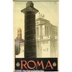 <B>Roma (ENIT,Circa 1930)</B></I> Travel Poster (24.5" X 37"). View of the Forum in Rome. Artwork by Retrosi. Old canvas mount. Nailed to wooden batten top and bottom. Fine condition on Canvas.