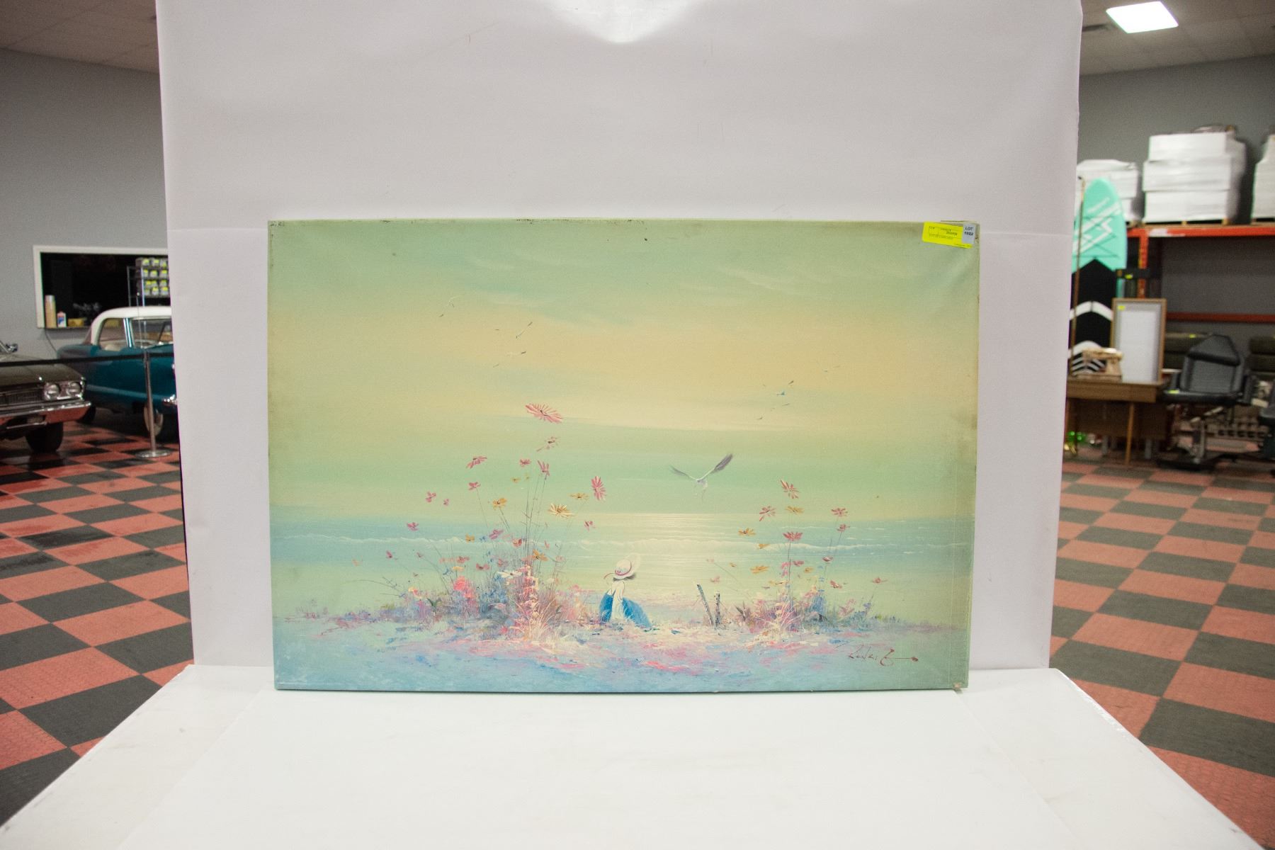 ORIGINAL CANVAS PAINTING GIRL + SEASCAPE 24" X 36"
