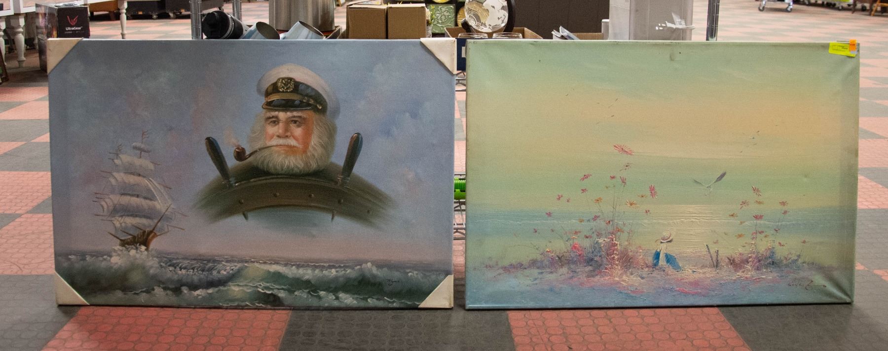 ORIGINAL CANVAS PAINTING GIRL + SEASCAPE 24  X 36