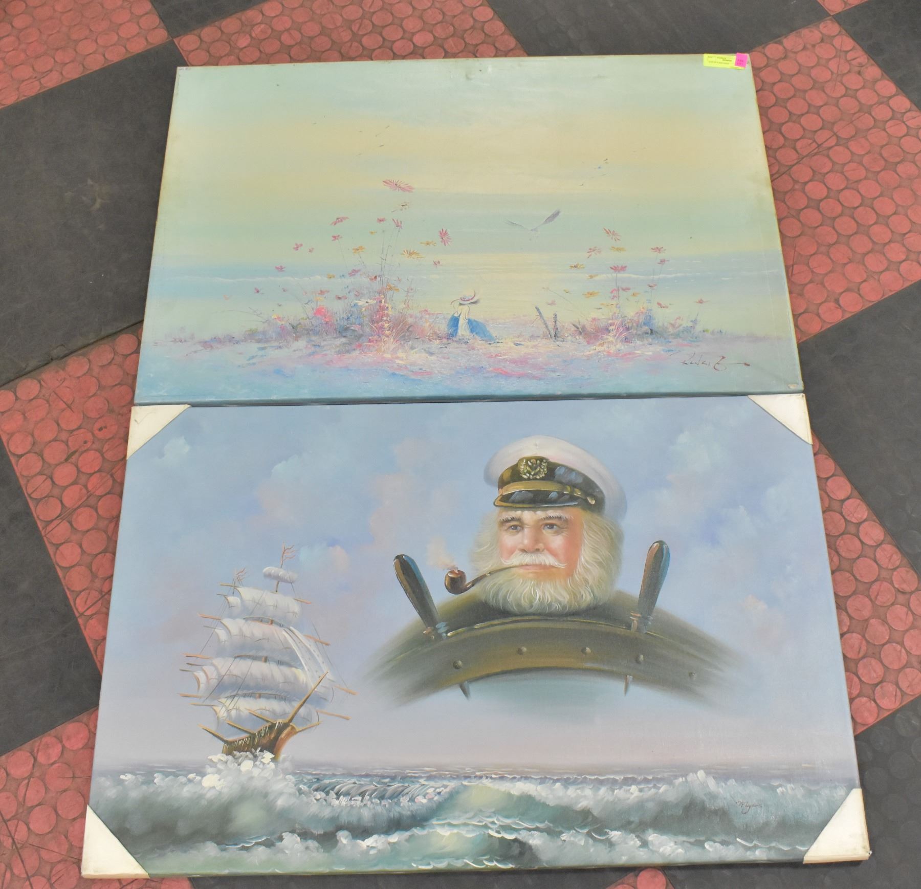 ORIGINAL CANVAS PAINTING GIRL + SEASCAPE 24" X 36"