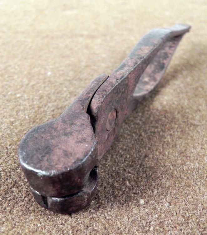 HERE IS AN ORIGINAL CIVIL WAR ROUND BULLET MOLD, IRON. IT IS ATTRIBUTED TO THE CIVIL WAR SOLDIER THAT USED IT. IT WAS IDENTIFIED BY A FAMILY MEMBER AND IS 6" LONG. *