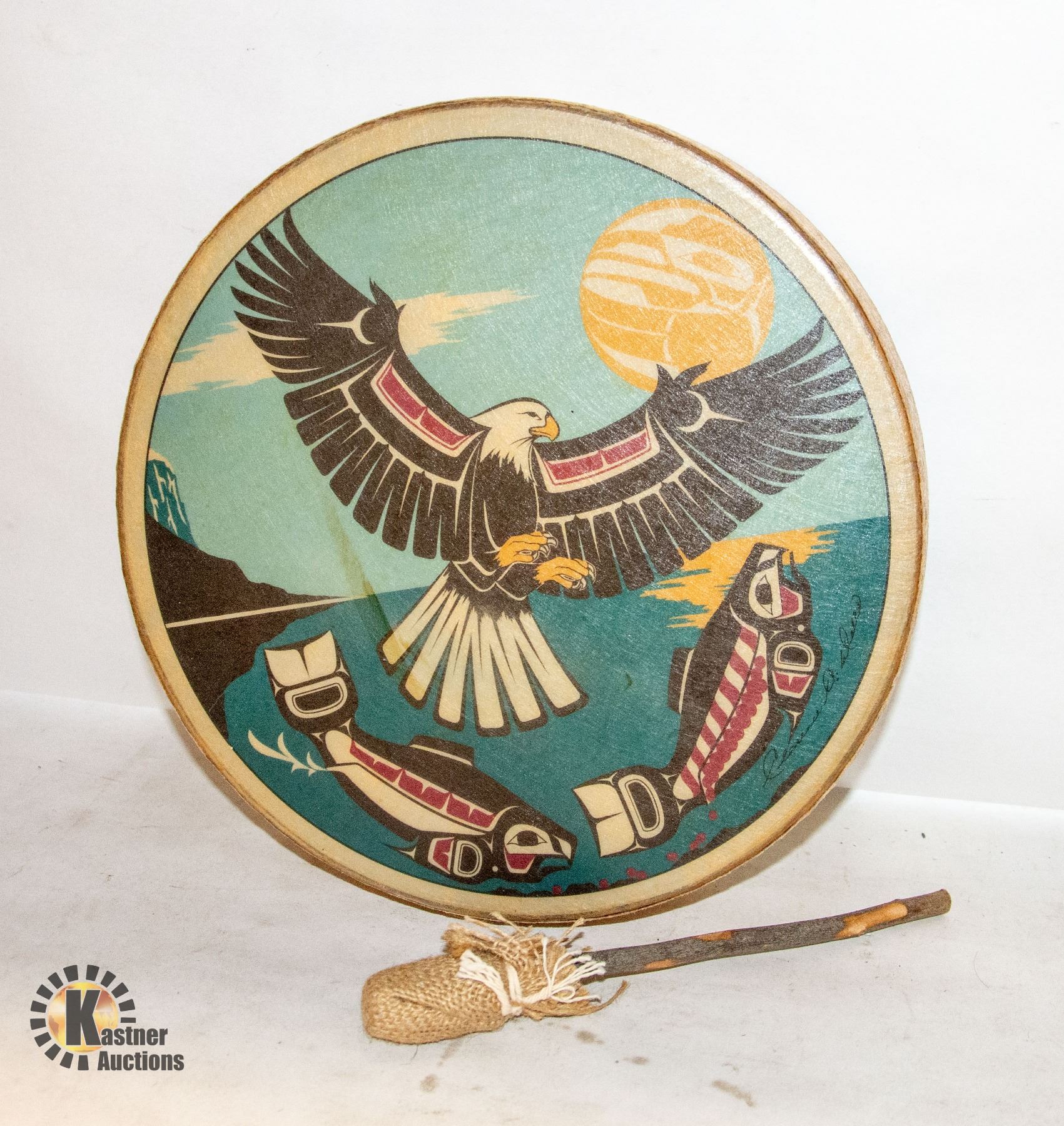 ORIGINAL CLARENCE G WELLS HAND DRUM HAND CRAFTED