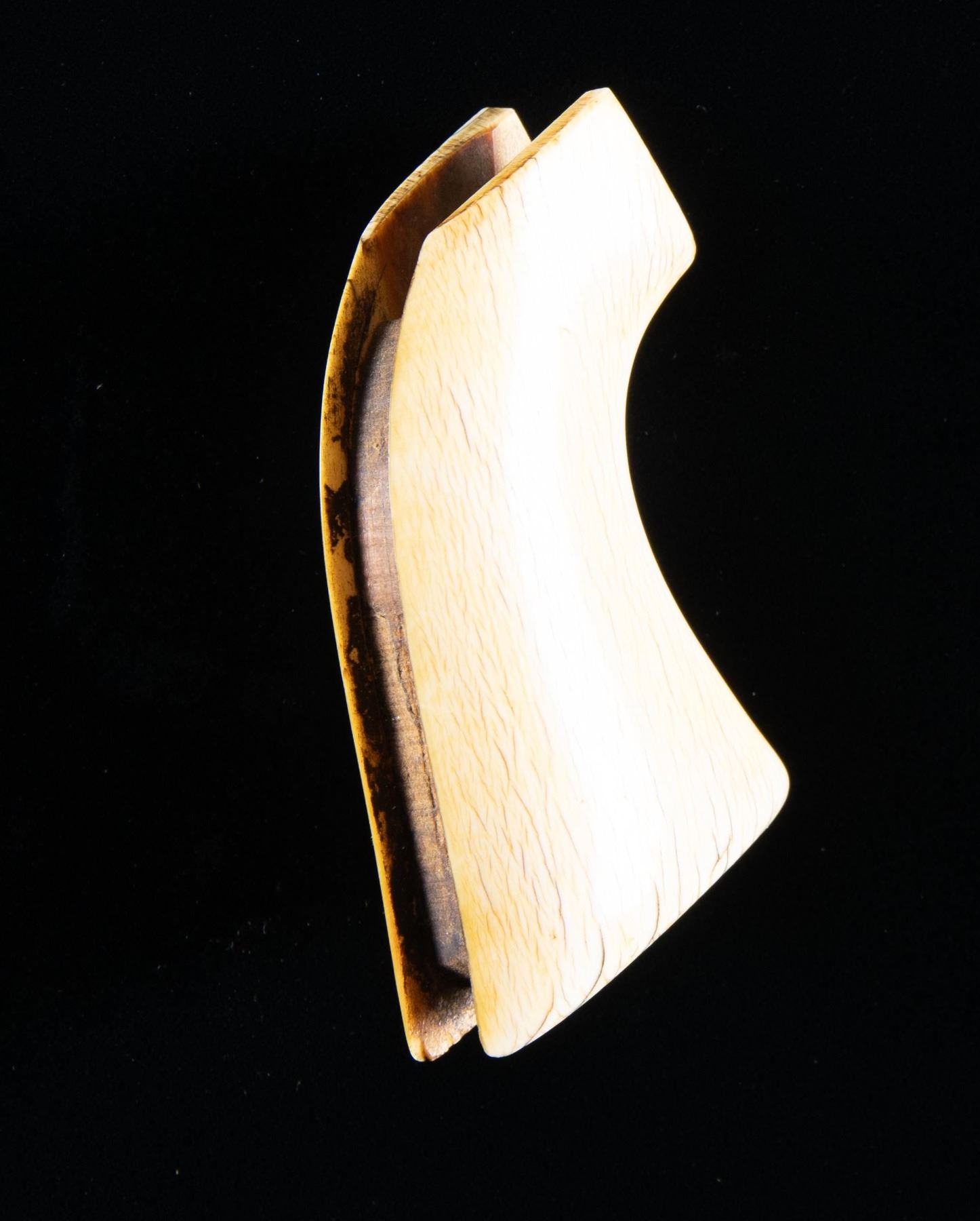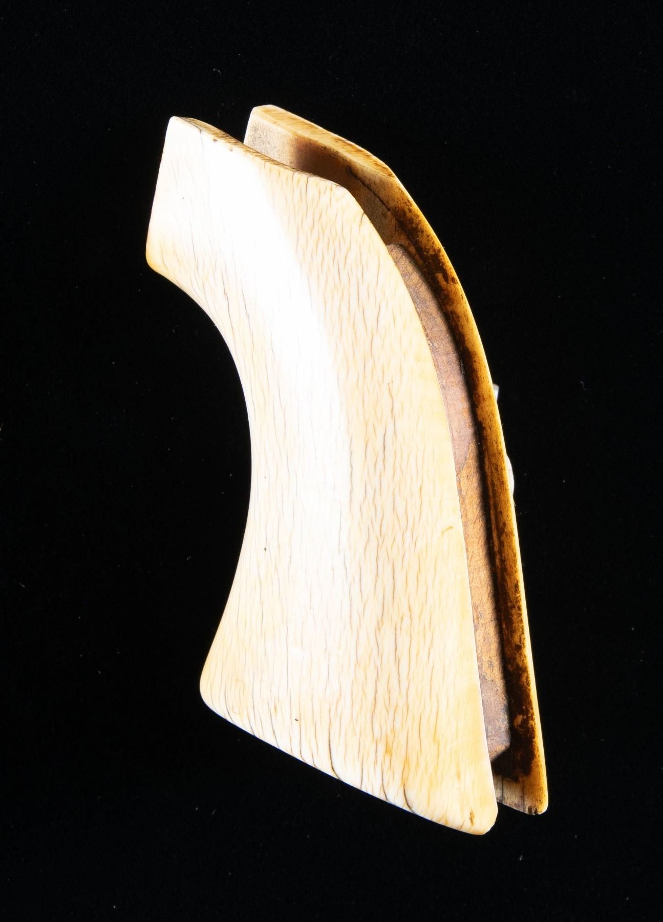 Smooth ivory well patinaed 1-piece grips made with screwed wood block internal construction. CONDITION: very good overall, well patinaed, hairlines, small chips at toes. PROVENANCE: The Esteemed Norm Greenberg Collection. (02-24850-2/JS). NON-GUN. $2,000-3,000.