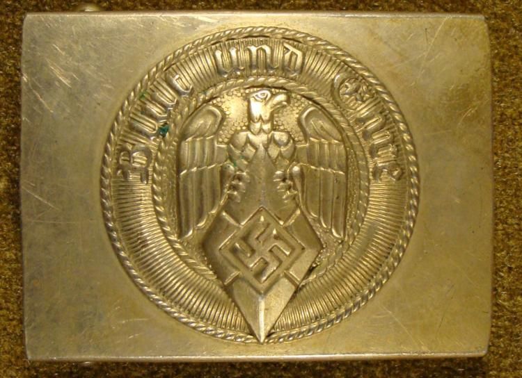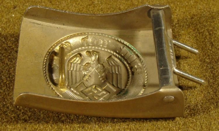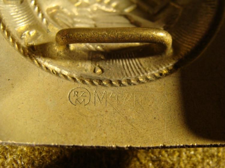 IT IS COMPOSED OF A EARLY HEAVY STEEL VARIETY. THE BUCKLE IS NICELY MARKED AND HAS ITS ORIGINAL PAINT. THE MAKER'S MARK IS ON THE REVERSE, "RZM-M4/40". * *