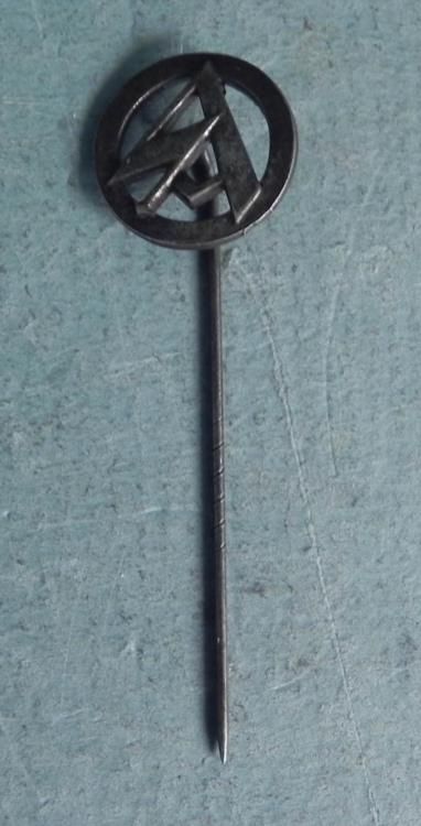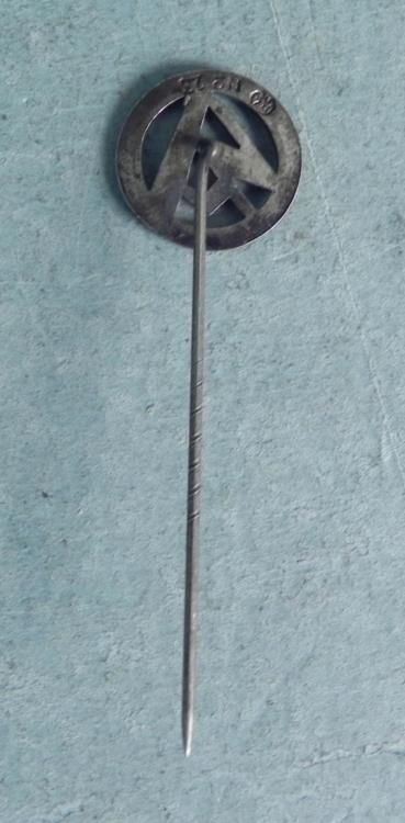 ORIGINAL EARLY NAZI SA STORMTROOPER'S MEMBERSHIP STICKPIN-MARKED RZM--No23 GUARANTEED ORIGINAL =HAS NAZI SA RUNIC SYMBOL IN CIRCLWLONG STICKPIN