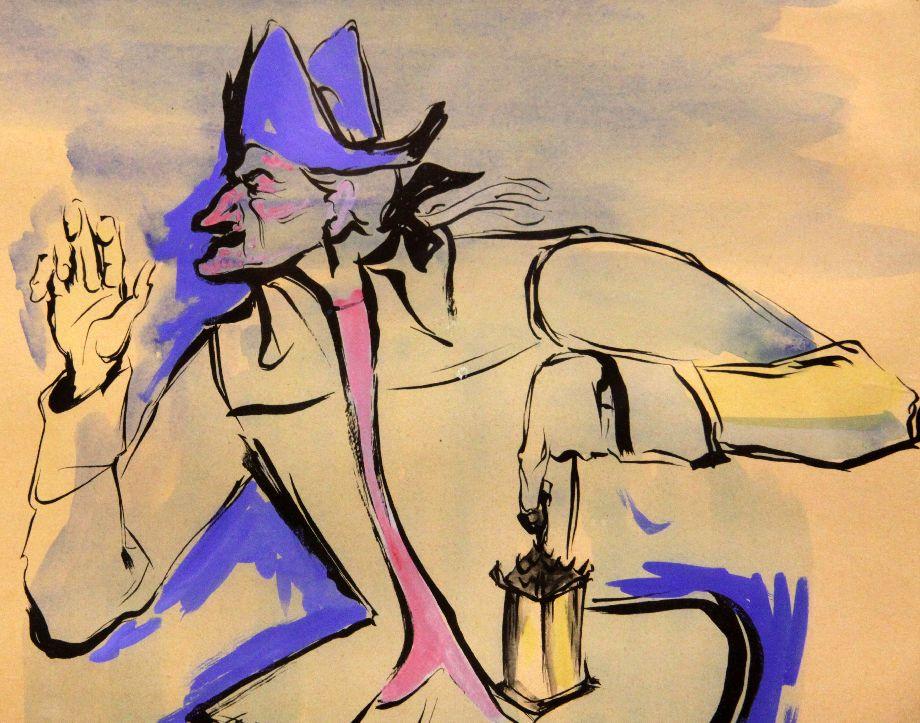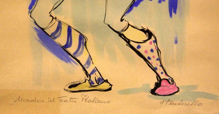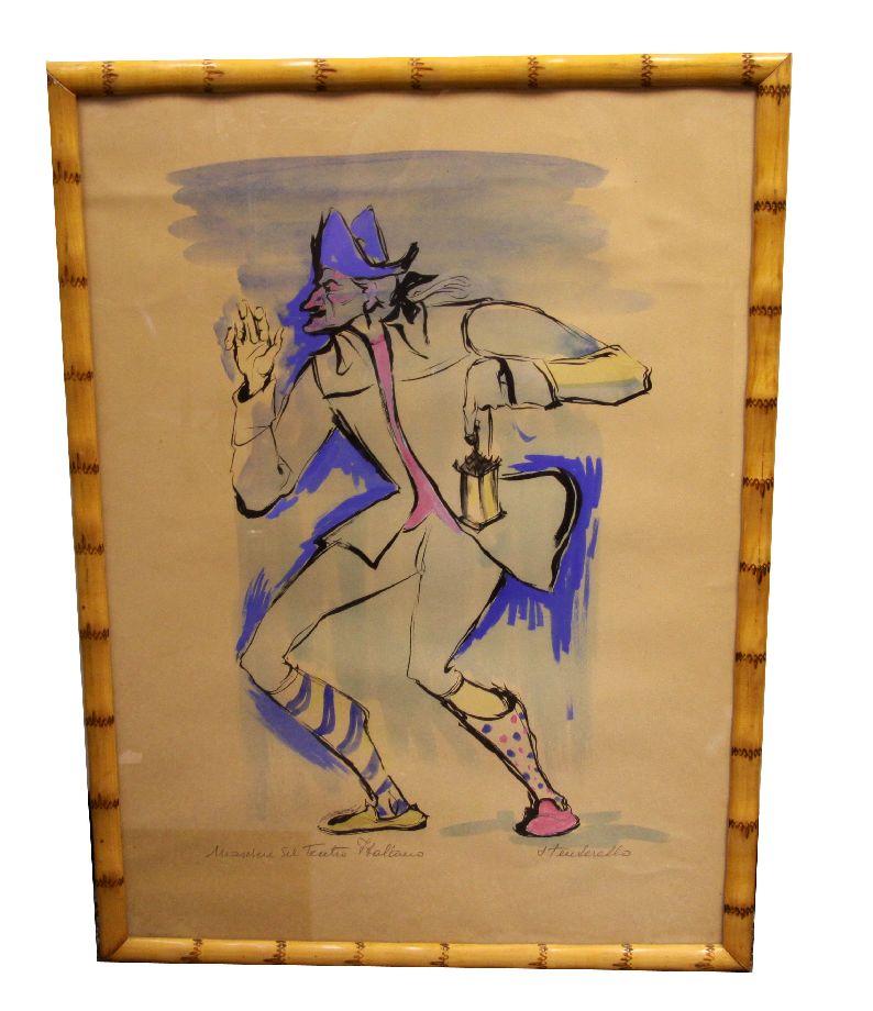 Colorful original work.19 by 26 inches. Framed. Mid twentieth century. Described and signed (in Italian) below subject. Very good condition with some toning to lower left hand corner. Paper backing torn.