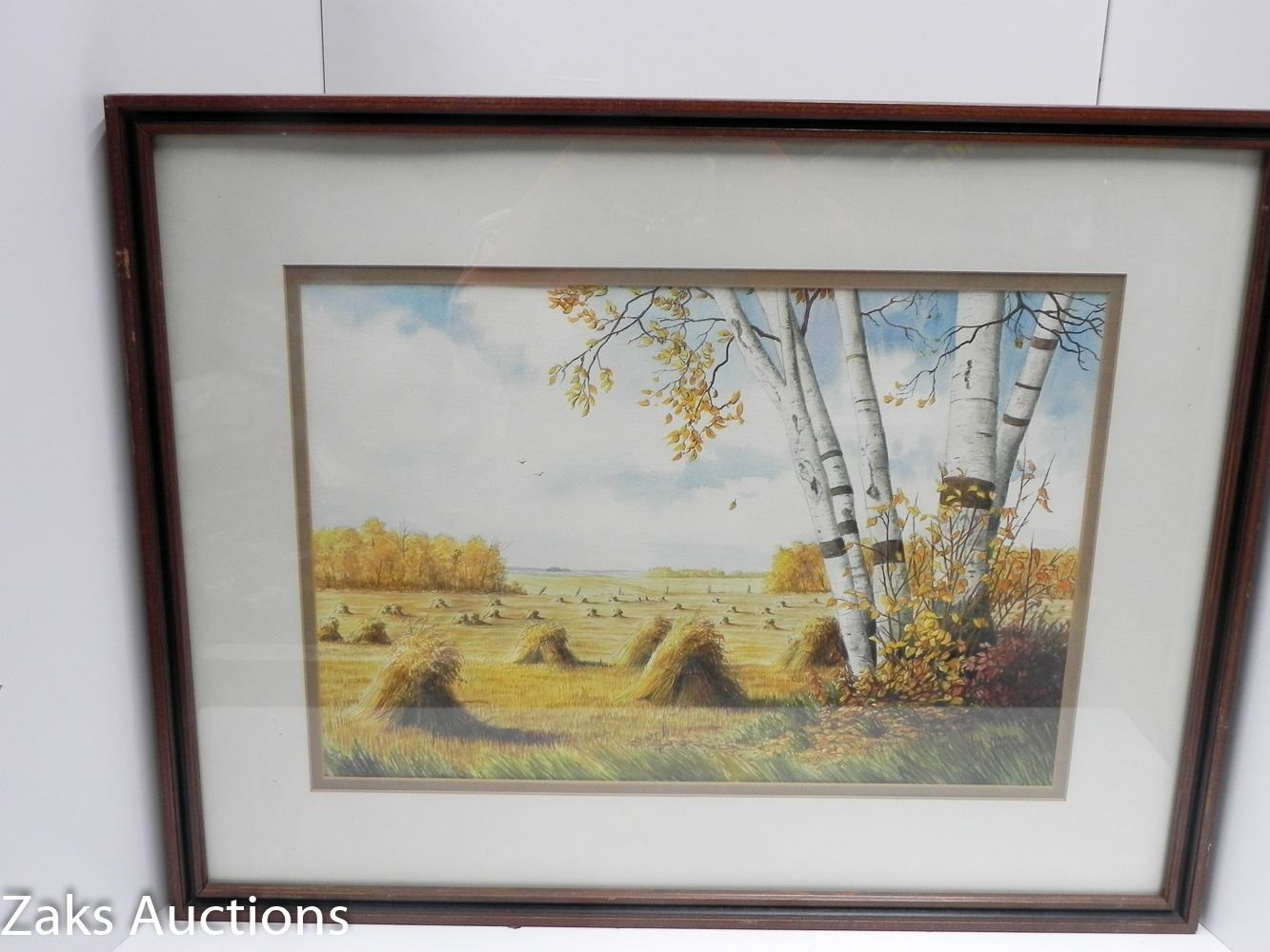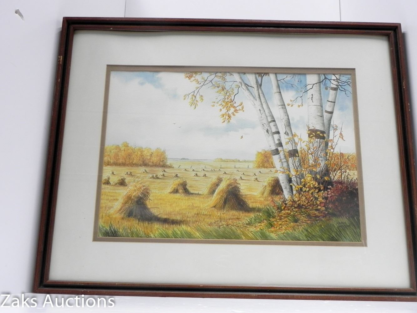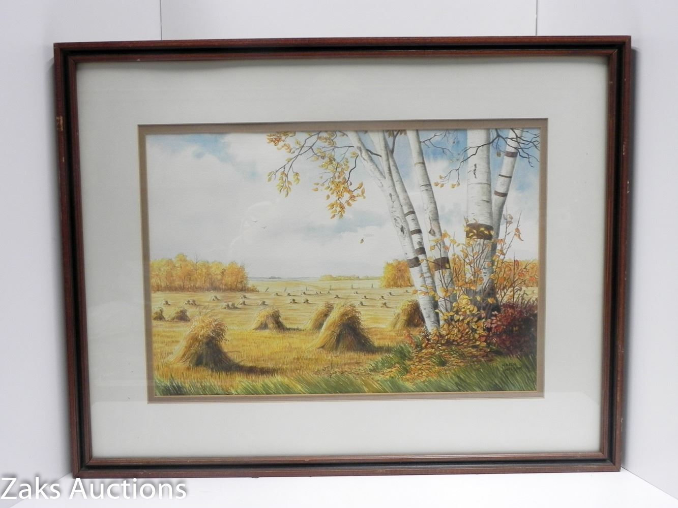 ORIGINAL FRAMED WATERCOLOUR, TITLED ALBERTA HARVEST BY MARLA WILSON. 12X18"