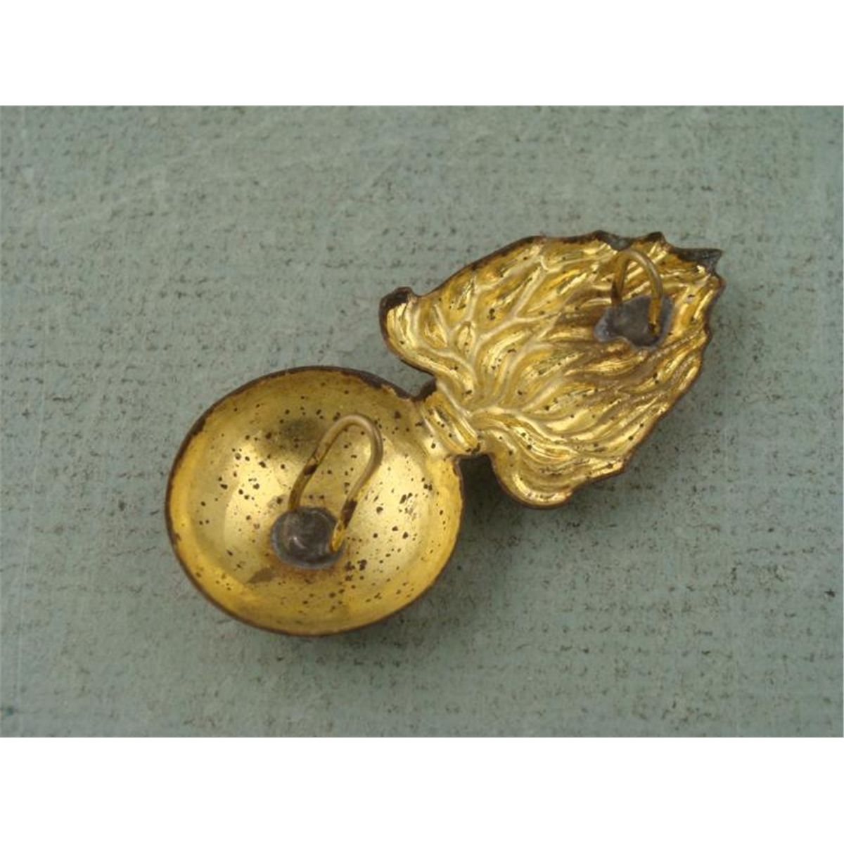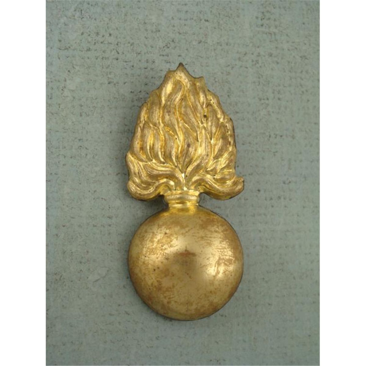 ORIGINAL FRENCH KEPI WWI ARTILLERY INSIGNIA-FLAMING BOMB W/BACK LUGS * GOLD PLATED-2 1/4" TALL *