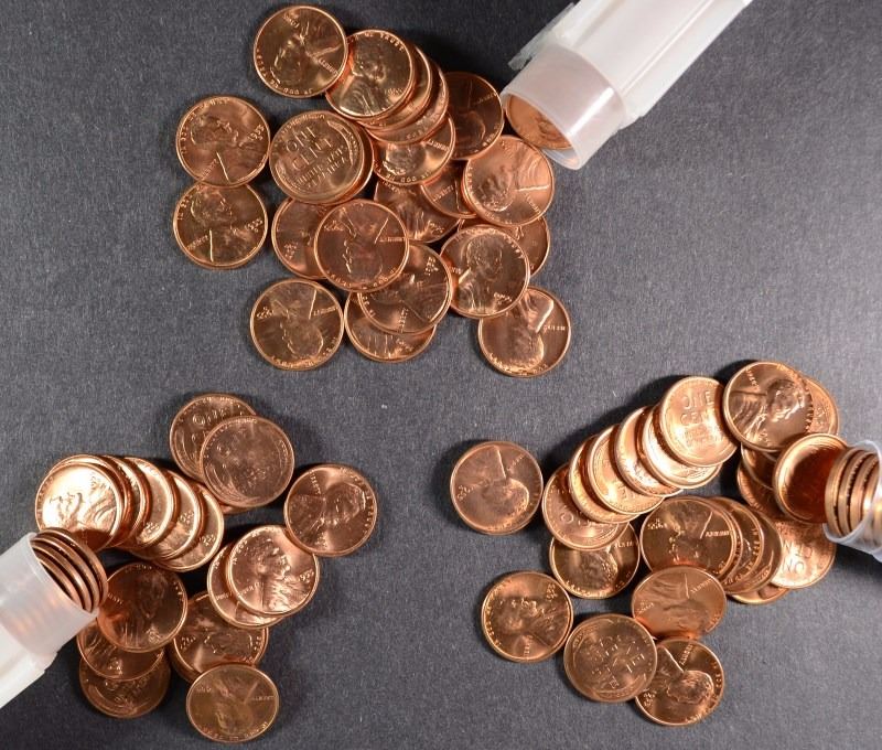 ORIGINAL GEM BU ROLLS OF LINCOLN CENTS: ( 2 ) 1955-S & ( 1 ) 1955-D, RED COINS