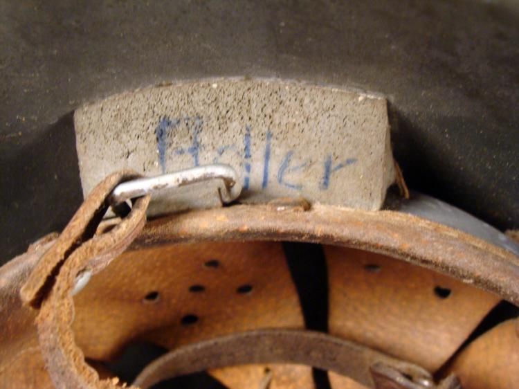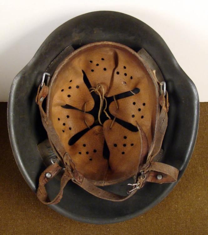 THIS VERY RARE ORIGINAL GERMAN VOPO COMBAT HELMET WITH FULL LINER AND CHINSTRAP. THE OWNERS NAME IS ON THE INSIDE WITH A NAZI LEATHER LINER. * * * * *