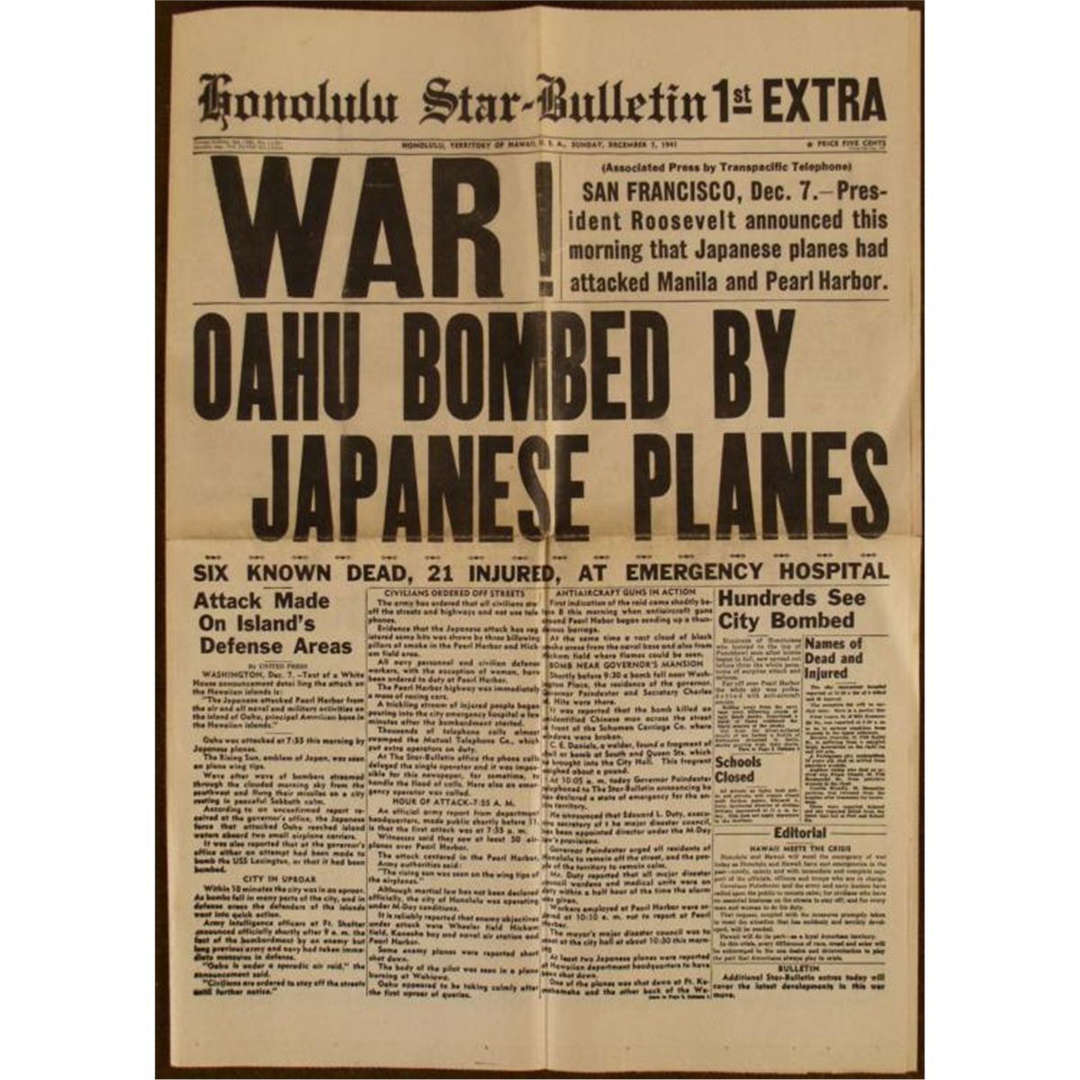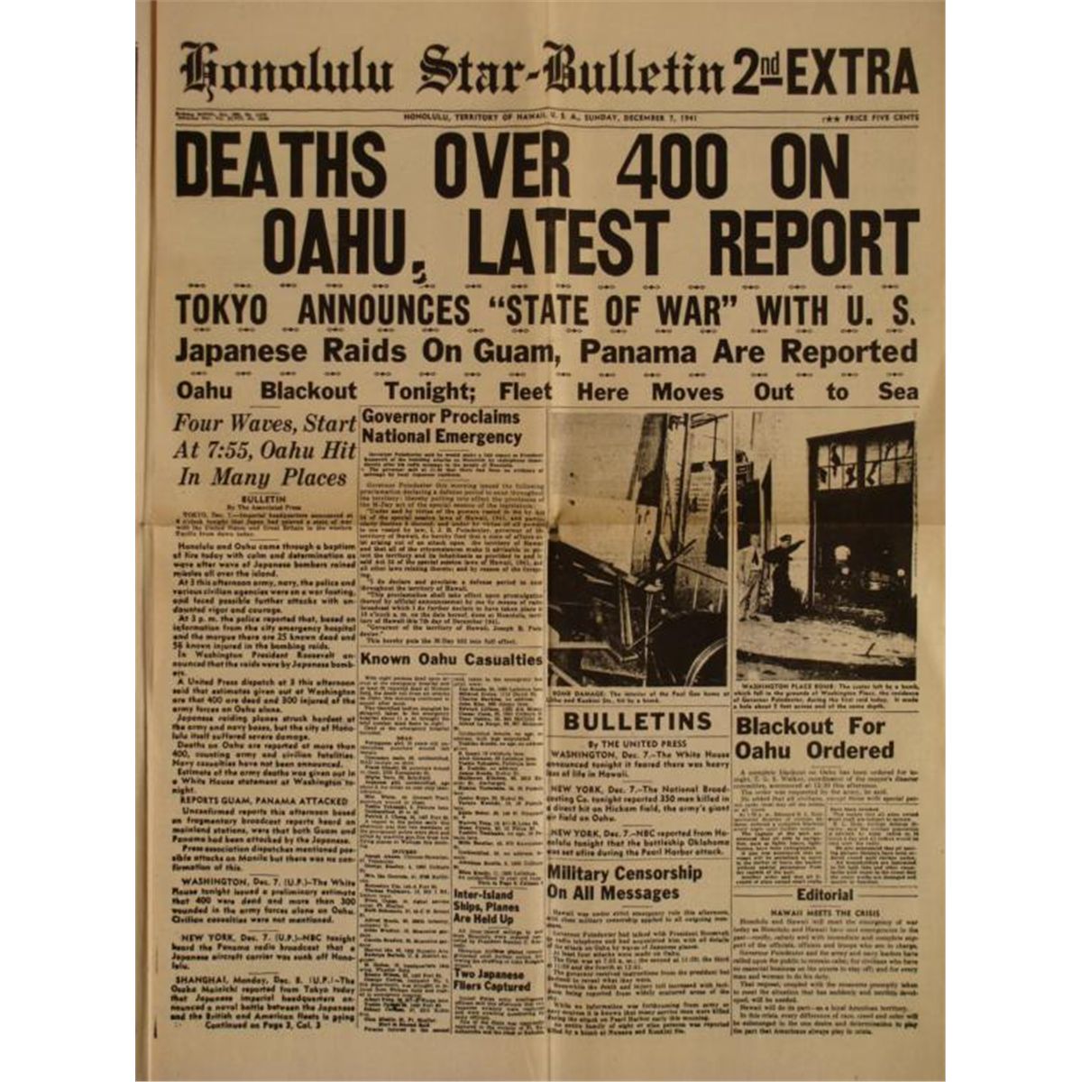 ORIGINAL HONOLULU NEWSPAPER -HEADLINE WAR ON JAPAN-12.7.1941 * GOOD CONDITION-SHELL ONLY *