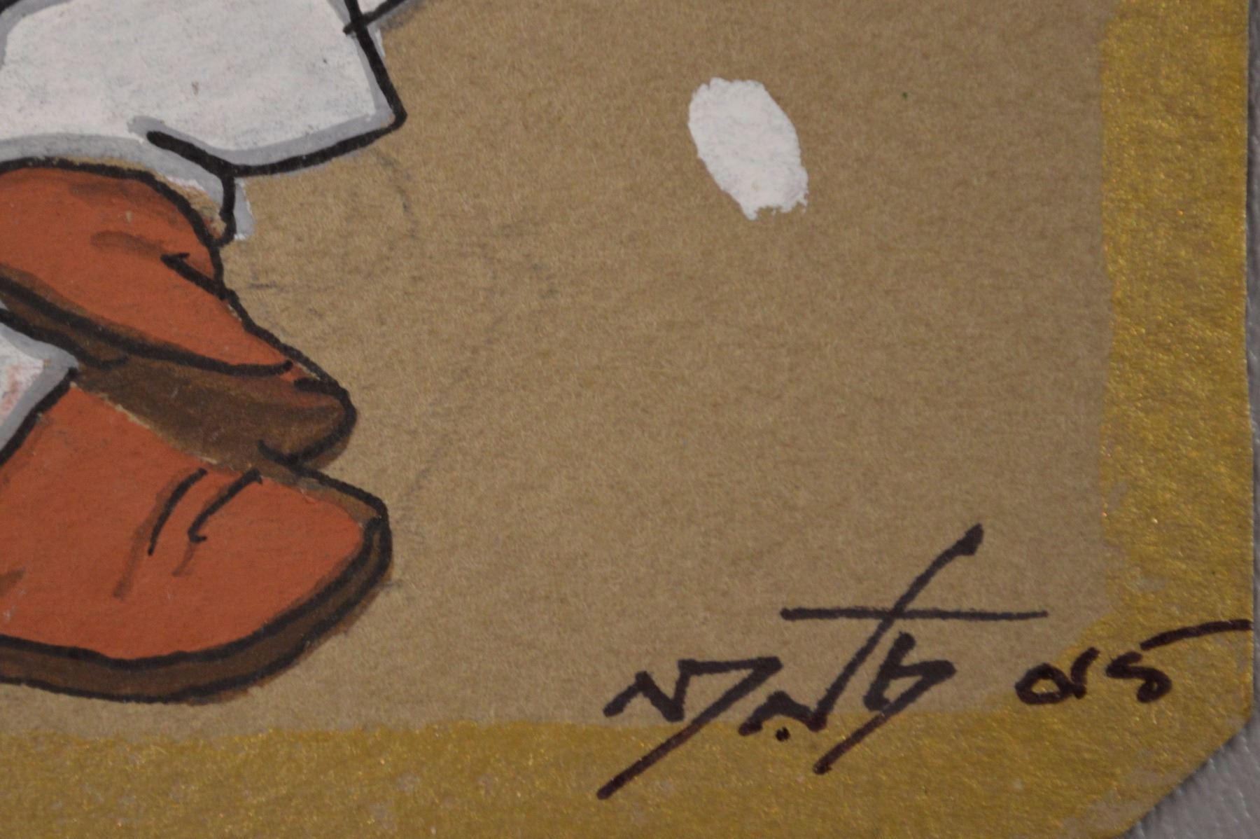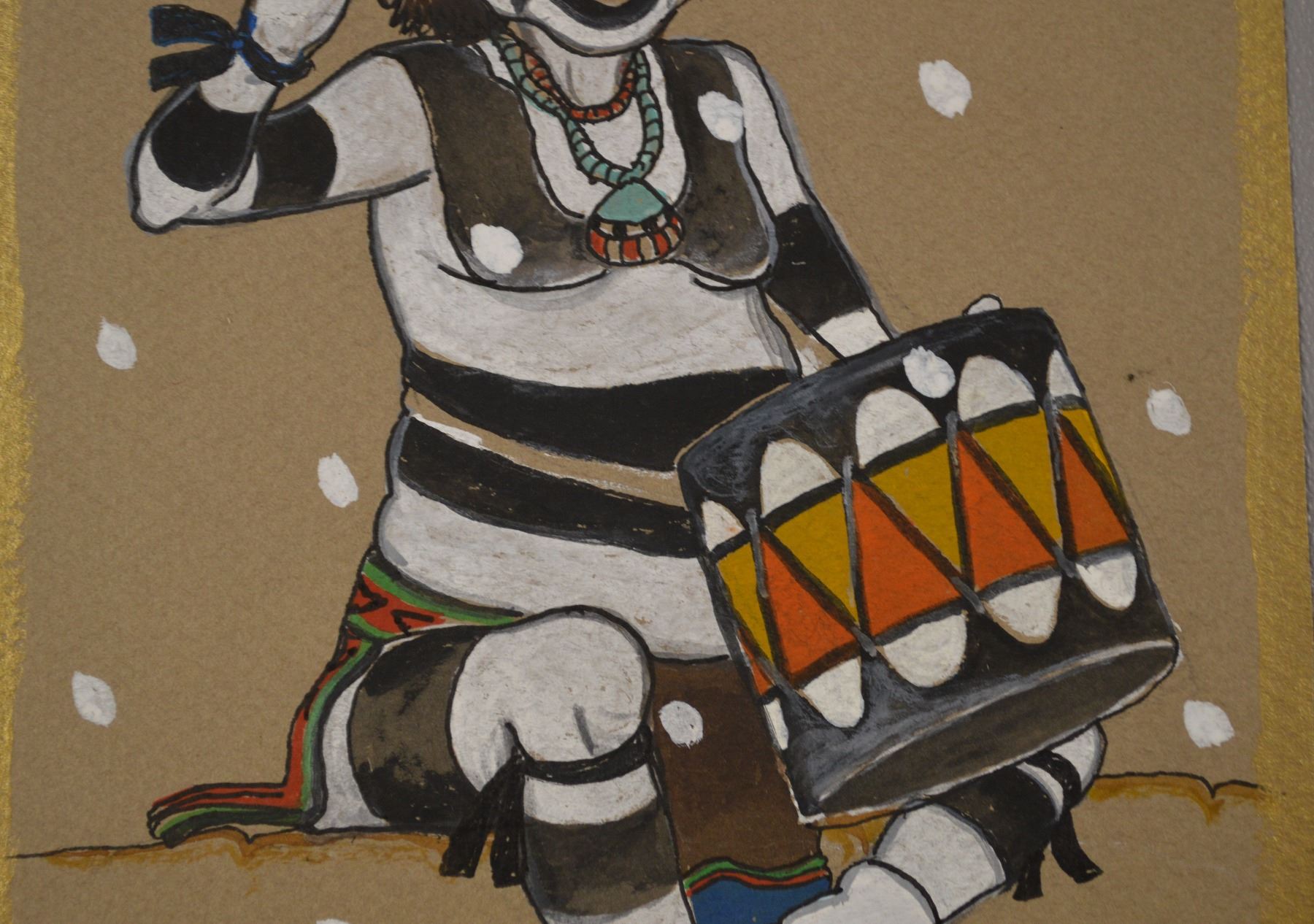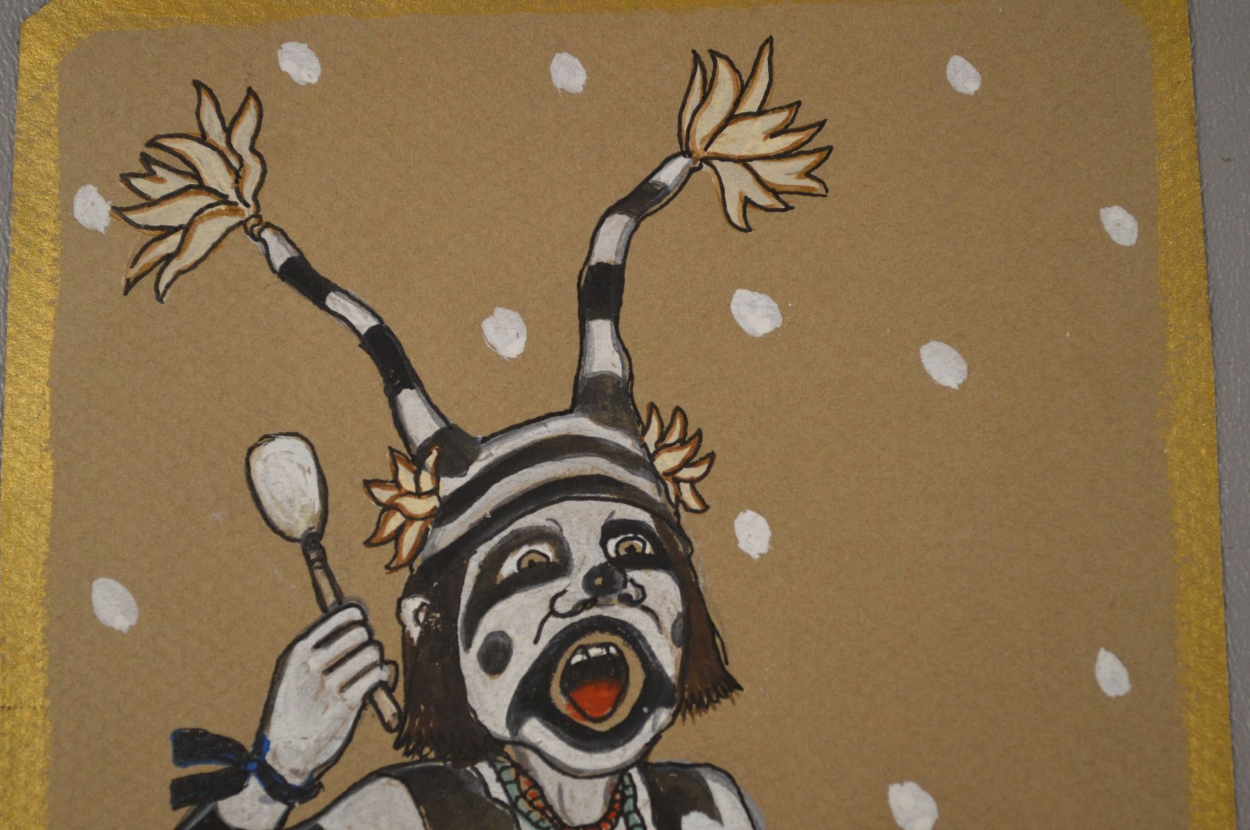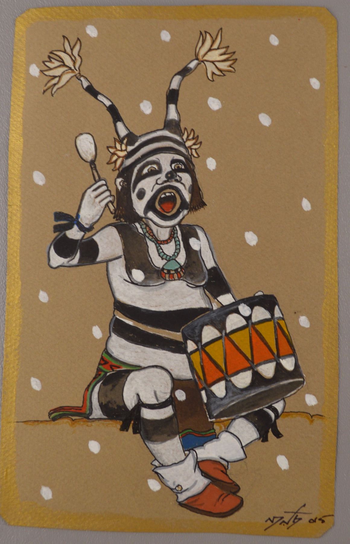 2015. Hand drawn and painted on paper depicting Koshari playing drum. Signed by Neil David