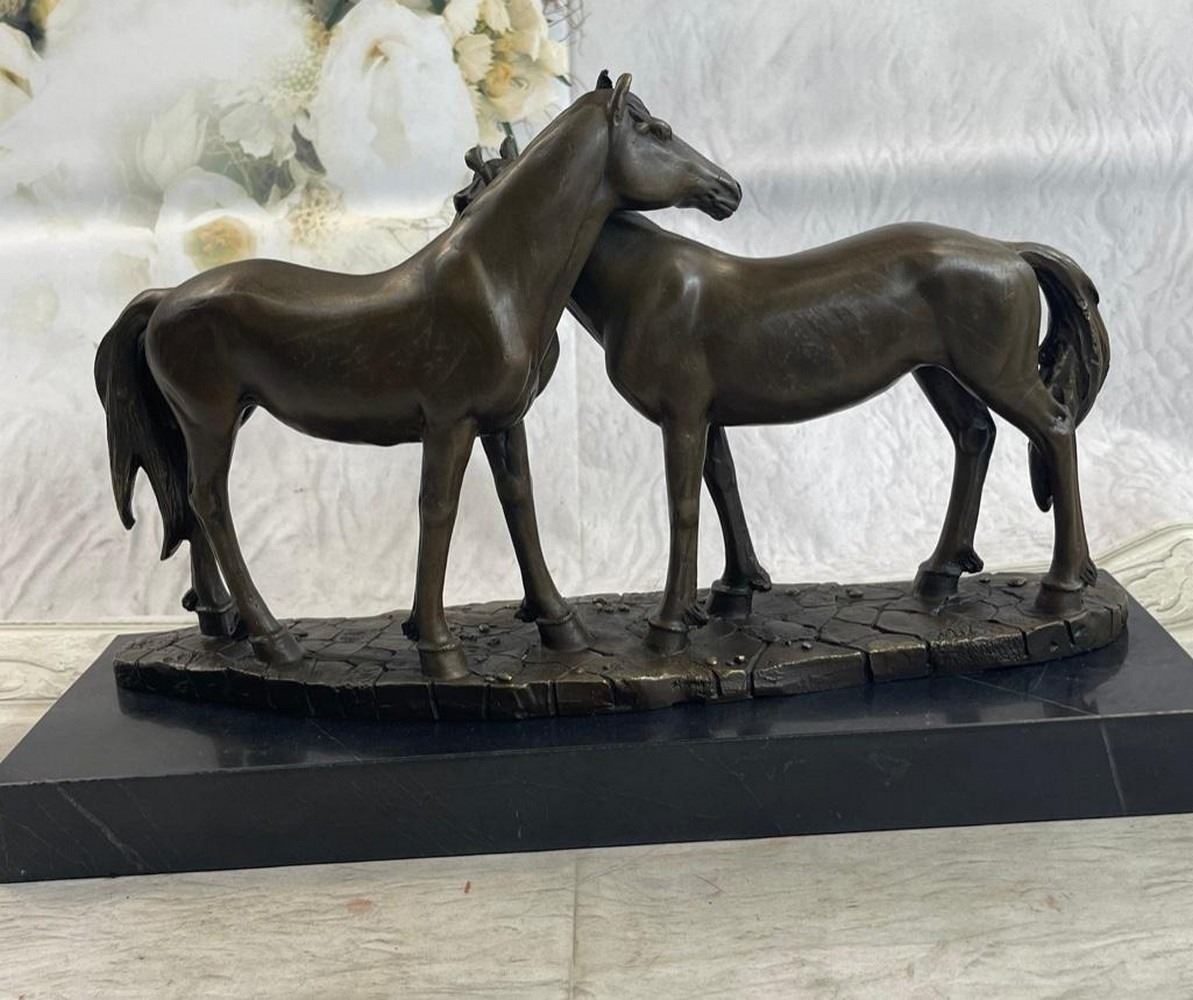 ORIGINAL HORSES IN LOVE BRONZE SCULPTURE MARBLE BASE FIGURINE