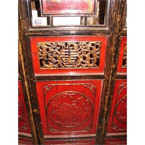 Circa 1880 or Earlier Original Chinese Folding Carved and Lacquered Six Panel Screen in Very Good Condition. Each panel is 8' in height and 19 1/2" in width and 2 1/2" in depth. Secured ver well together with hinges. When this wonderful piece of Early Chinese Furniture is unfolded it measures almost 10' in total length and with it's height of 8' it can really consume a big room. I GUARANTEE 100 % That this is NOT a recently made piece of furniture made in china. It absolutely dates to the late 1800s if not earlier. Additional Images available upon request.