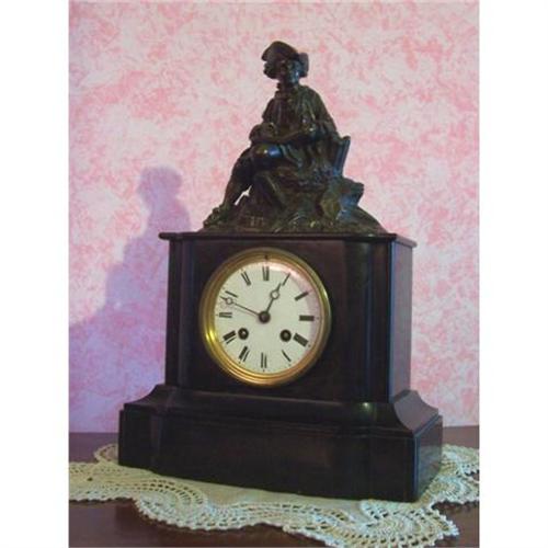 EXQUISITE LOUIS PHILIPPE ERA CLOCK. Made of black rare Belgian marble base and fine bronze sculpture. French soldier, American revolution period. Clock works very well. Crystal back. It comes with its own key and pendulum.