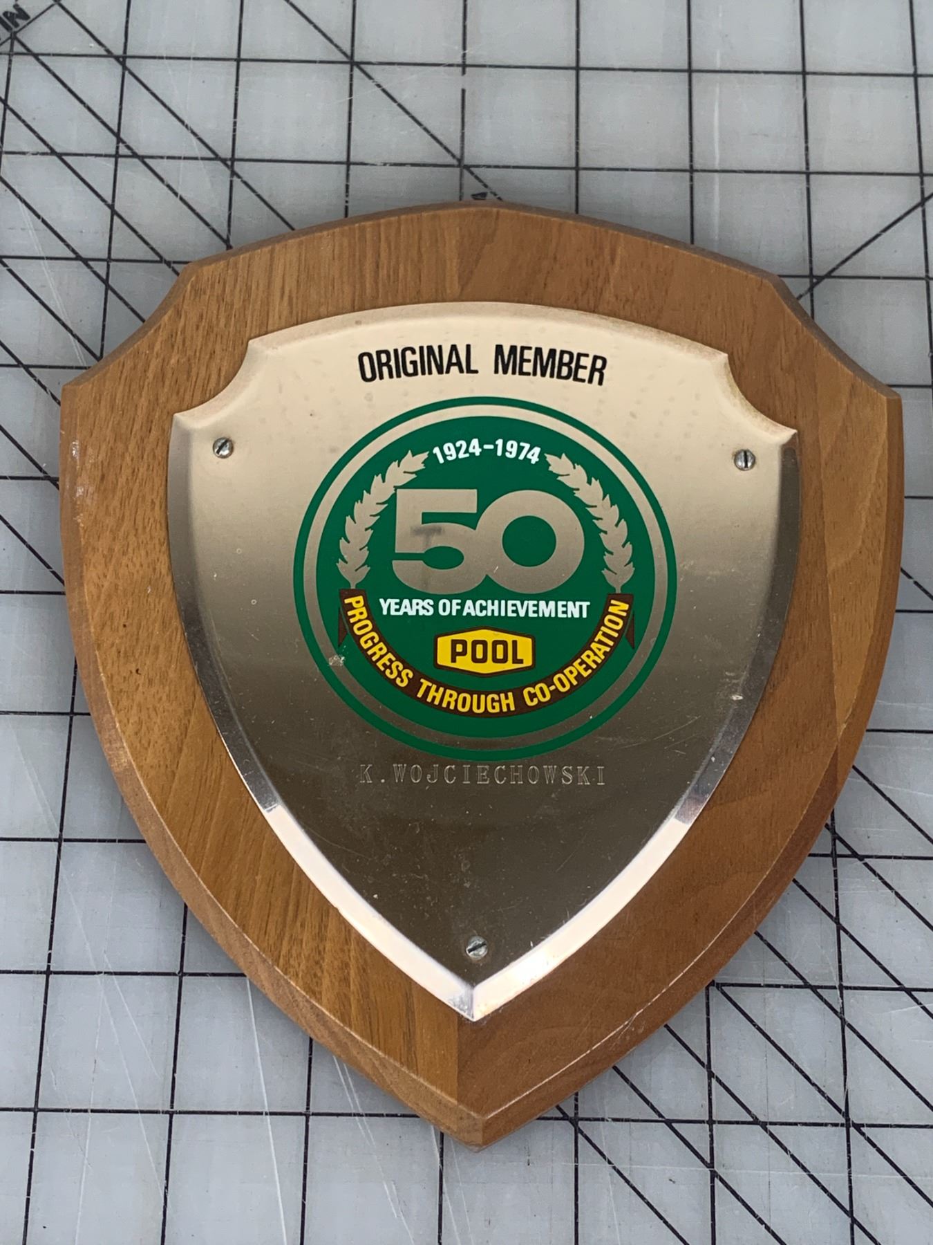 ORIGINAL MEMBER 50 YEAR PLAQUE SASKATCHEWAN WHEAT POOL