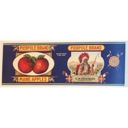 ORIGINAL CIRCA 1920'S - 1940'S PIERPOLE BRAND MAINE APPLES BOX LABEL. 19.5" X 6.75". EXCELLENT CONDITION, CONSERVATION MOUNTED ON CANVAS.