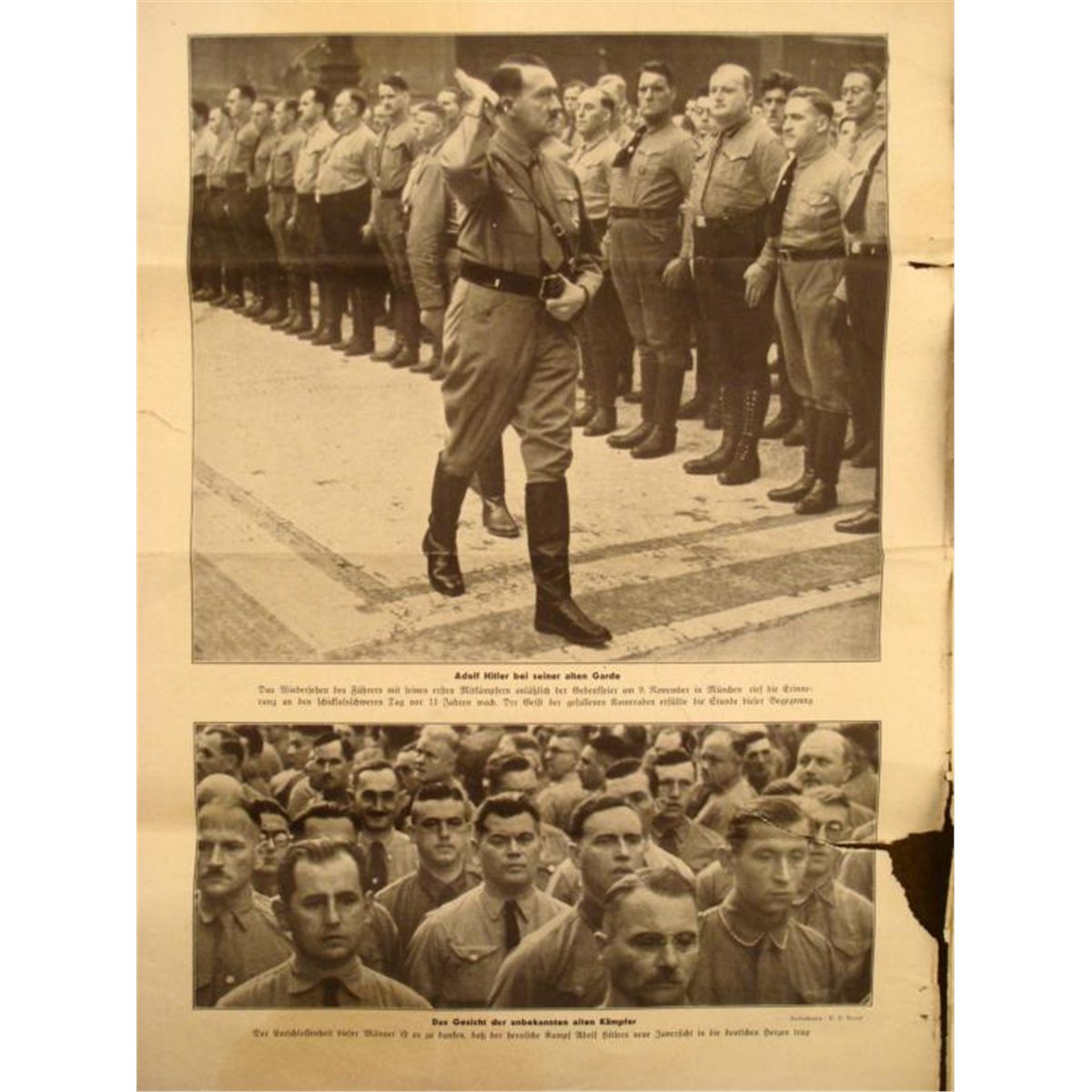 HERE IS A RARE ORIGINAL MUNICH NAZI GERMANY NEWSPAPER, WITH HITLER & STORMTROOPER PHOTOS FROM NOVEMBER 1934. THERE IS WEAR & A TEAR TO THE NEWSPAPER. *