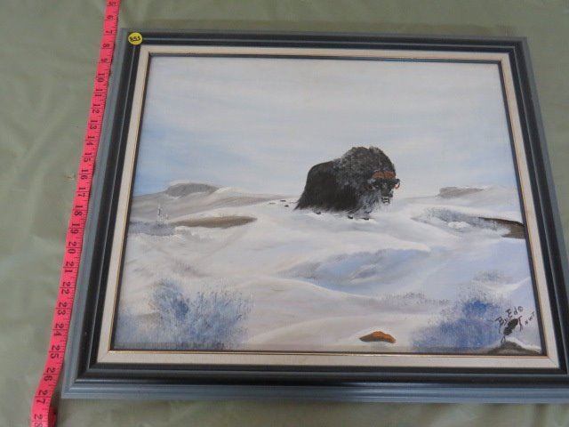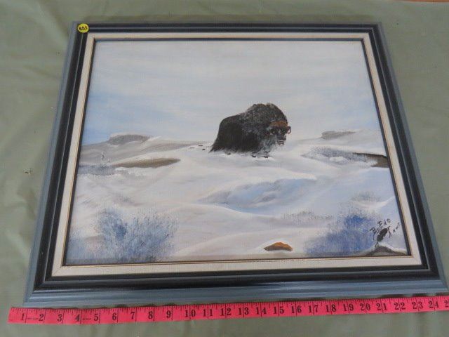 ORIGINAL MUSKOX, SNOW SCENE, FRAMED, SIGNED PAINTING
