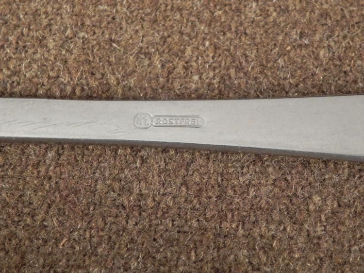 THIS IS A GREAT ORIGINAL NAVY/NAZI KRIEGSMARINE OFFICER'S DINING HALL FORK. IT IS MARKED "M" FOR KRIEGSMARINE. IT HAS AN EAGLE AND SWASTIKA, AND IS MARKED MHJ & ROSTFREI. THE FORK IS 8 1/2" LONG. * *