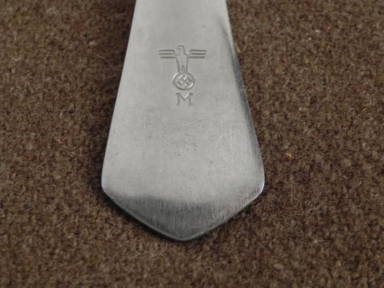 THIS IS A GREAT ORIGINAL NAVY/NAZI KRIEGSMARINE OFFICER'S DINING HALL FORK. IT IS MARKED "M" FOR KRIEGSMARINE. IT HAS AN EAGLE AND SWASTIKA, AND IS MARKED MHJ & ROSTFREI. THE FORK IS 8 1/2" LONG. * *
