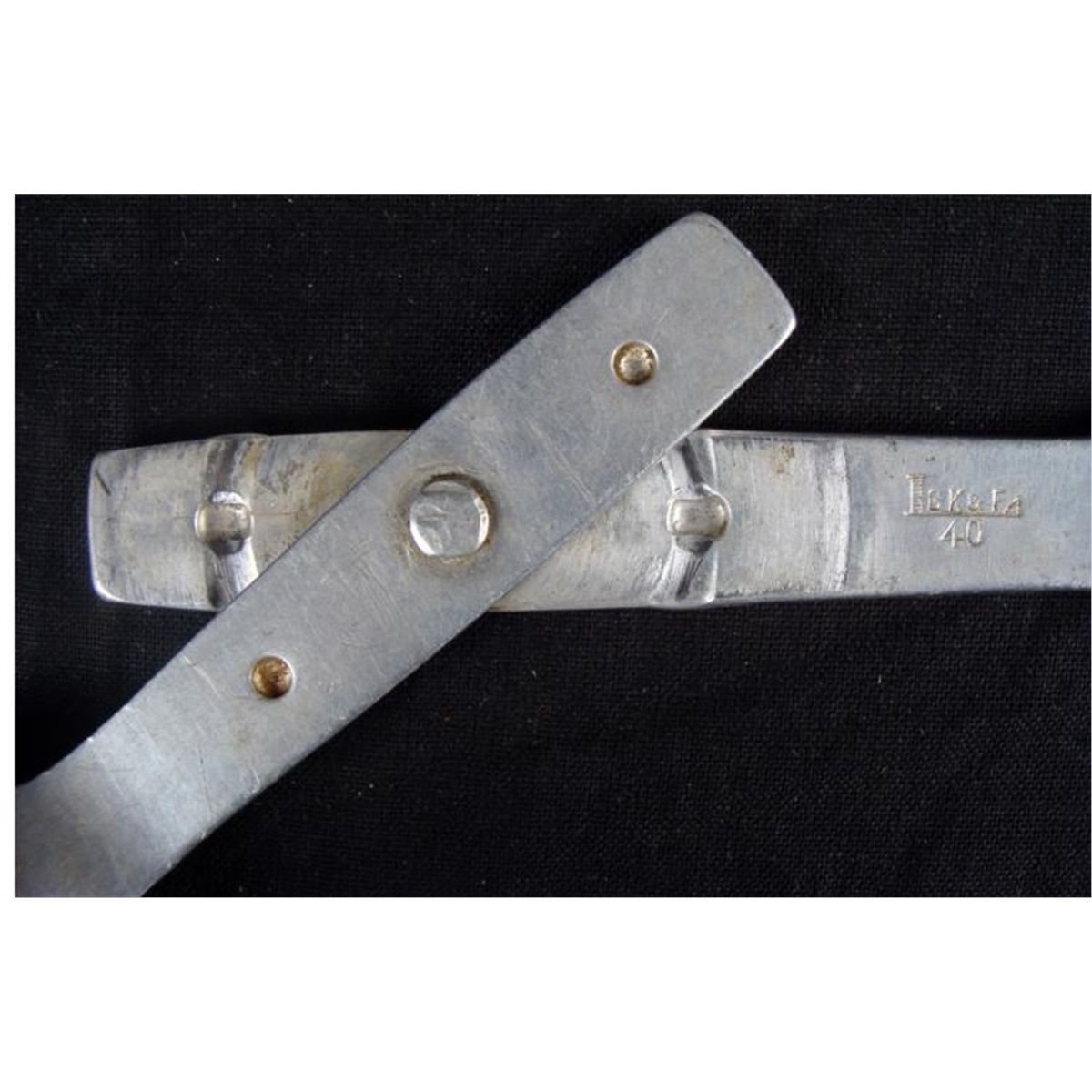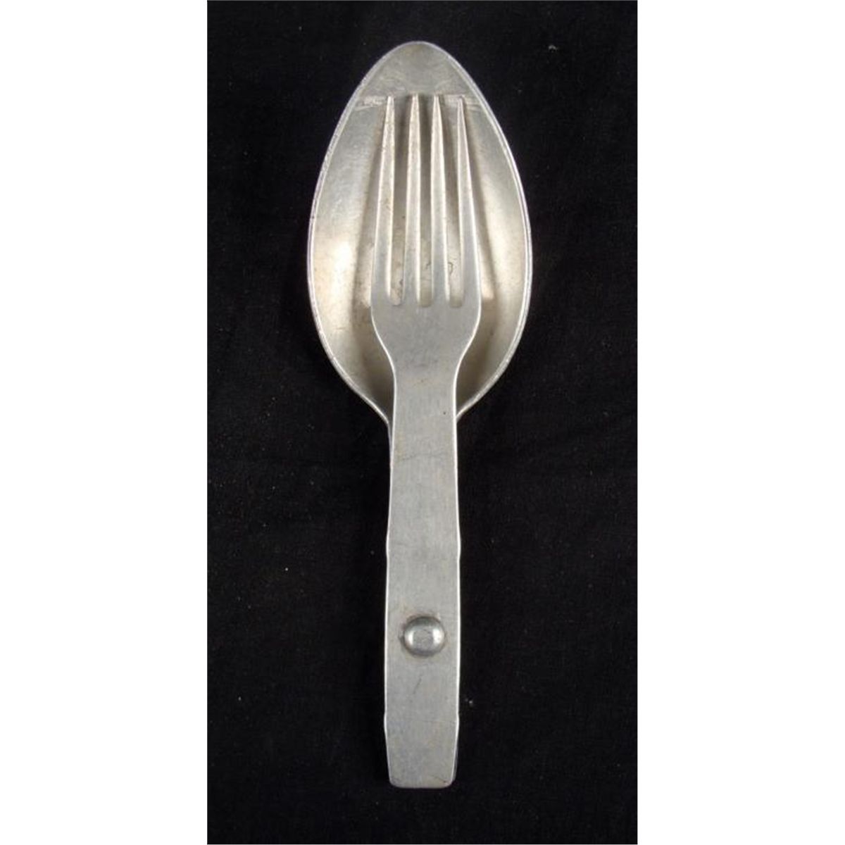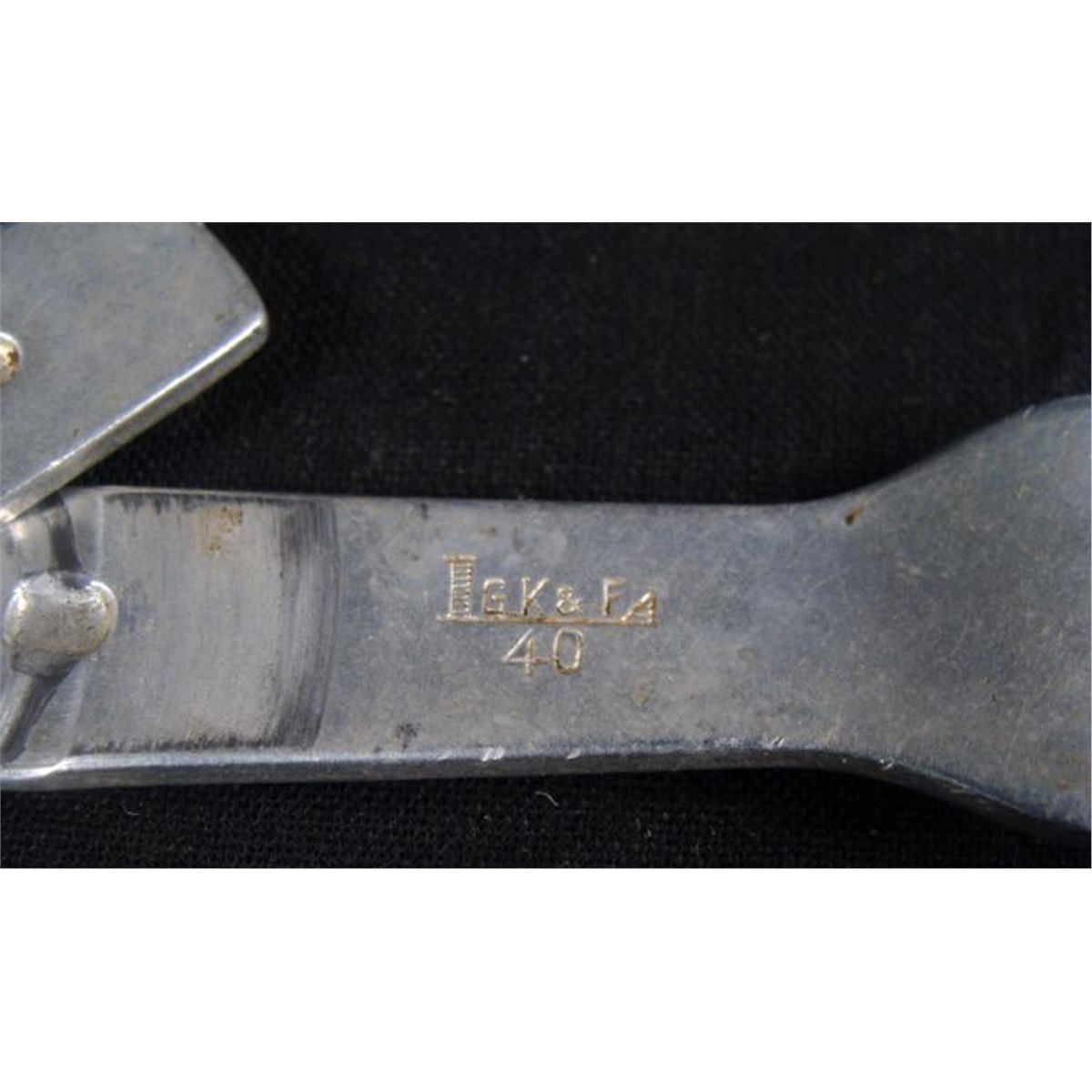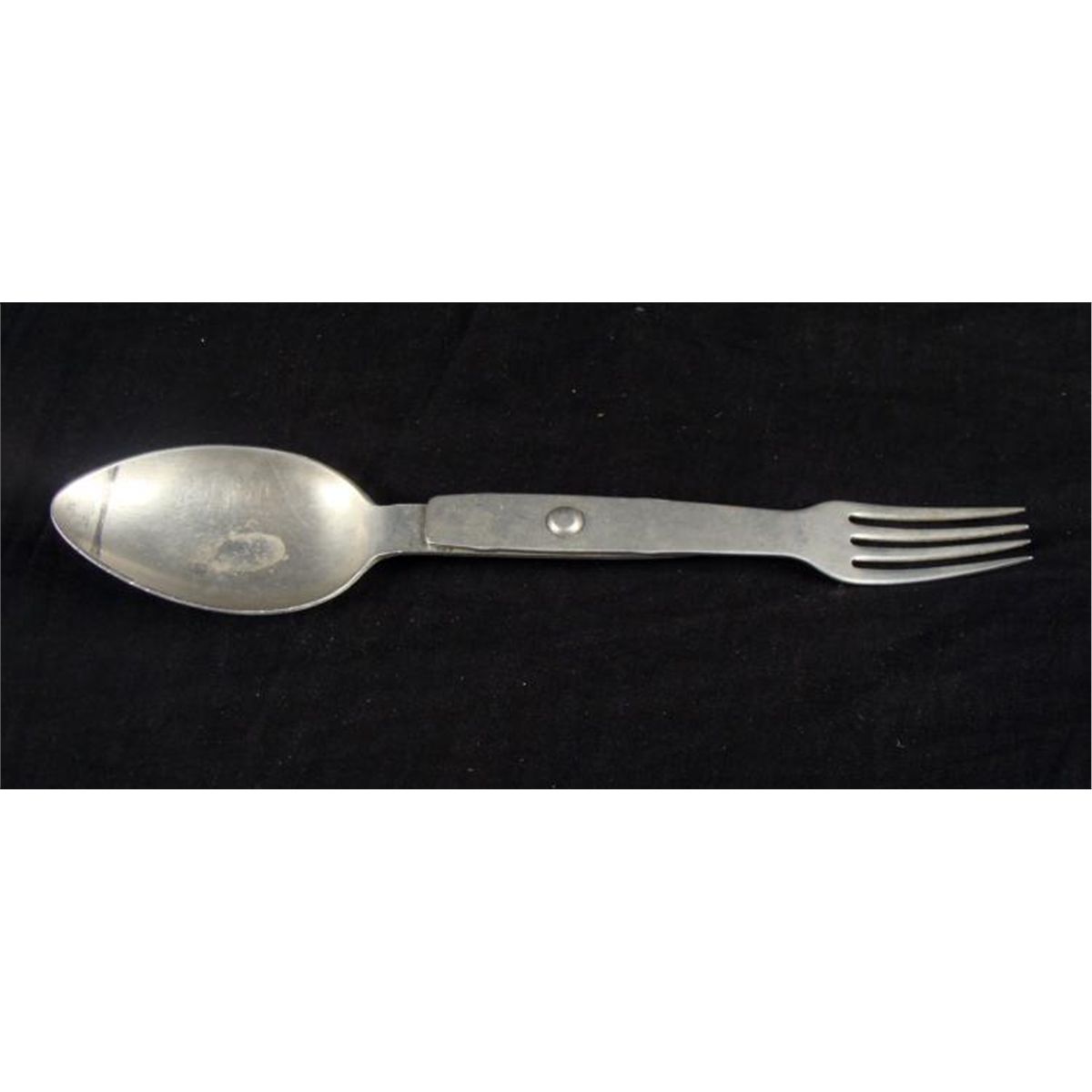 THIS IS AN ORIGINAL NAZI, 1940 FIELD FOLDING SPOON & FORK. THE MARKERS MARK IS UNDERNEATH THE FORK, "GK&F 40" WITH THE LOGO. ITS TOTAL LENGTH IS 9 1/4" AND IT IS IN GOOD CONDITION. * * * *