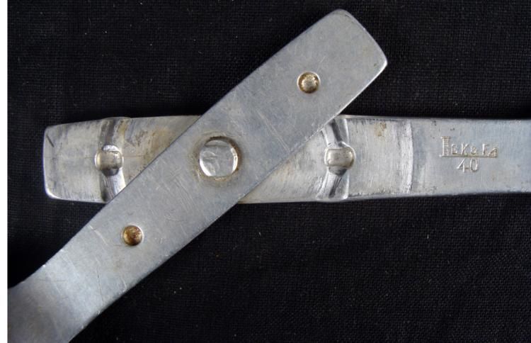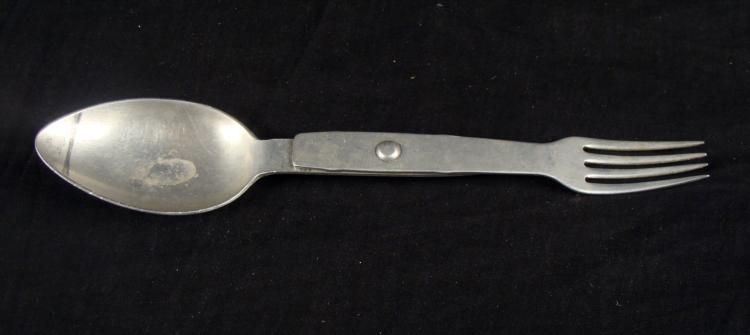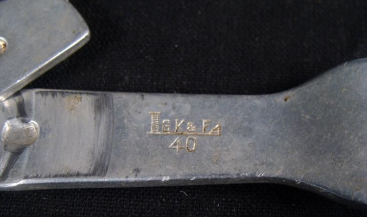THIS IS AN ORIGINAL NAZI, 1940 FIELD FOLDING SPOON & FORK. THE MARKERS MARK IS UNDERNEATH THE FORK, "GK&F 40" WITH THE LOGO. ITS TOTAL LENGTH IS 9 1/4" AND IT IS IN GOOD CONDITION. * * * *