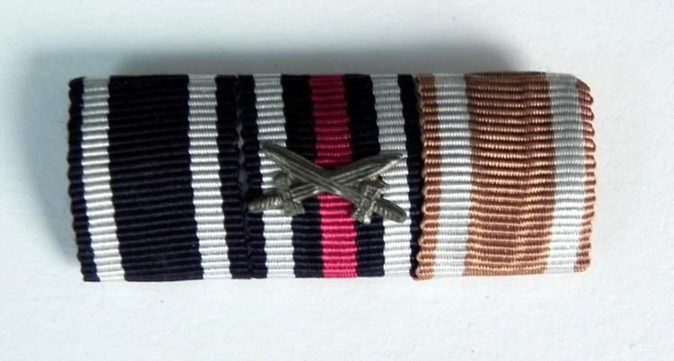 ORIGINAL NAZI 3 RIBBON BAR - PIN BACK---RIBBONS ARE IRON CROSS WWI - WAR MERIT WITH SWORDS - OCCUPATION 0 ORIGINAL - MINT