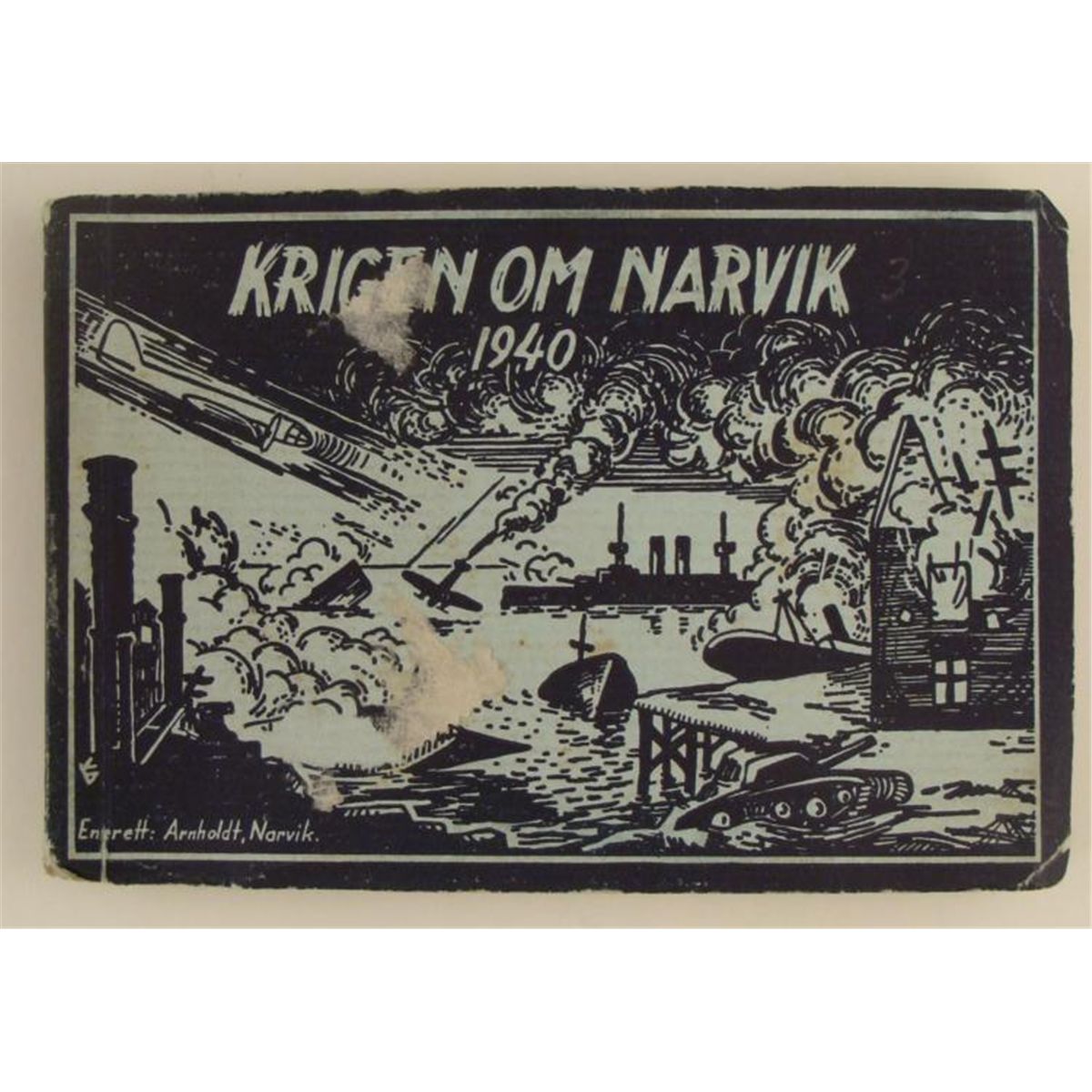 OFFERED HERE IS A NAZI INVASION OF NARVIK 1940-PHOTO BOOK. THER ARE WAR SCENES ON COVER AND INSIDE PHOTOS OF WAR DAMAGE FROM THE NAZIS. IT CONTAINS 11 PHOTOS AND IS A GREAT HISTORICAL ORIGINAL PIECE. *