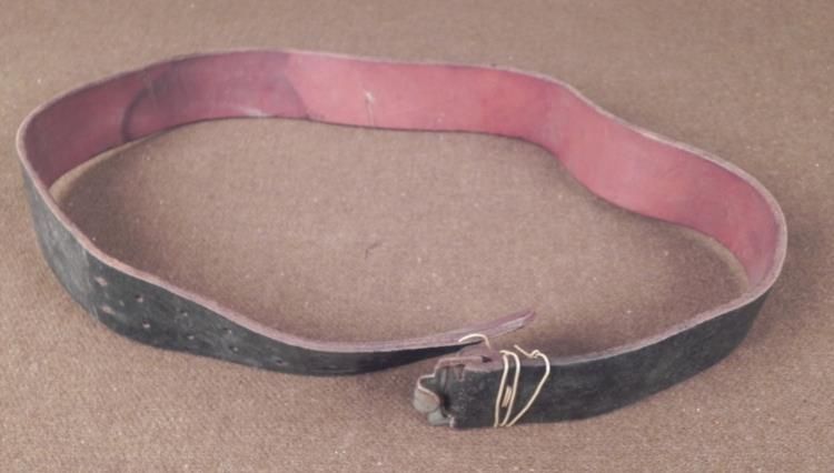 ORIGINAL NAZI LEATHER BELT-SIZE MARKED 105 * KEEPER END STITCHING APART--RE-ATTACHED W/WIRE-LEATHER IS GOOD