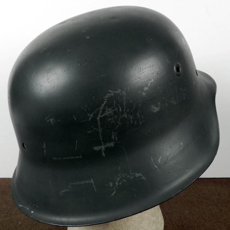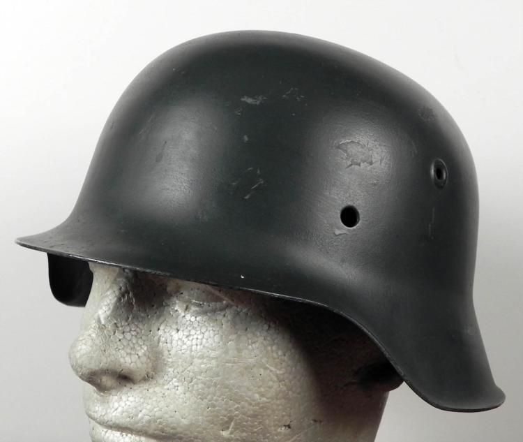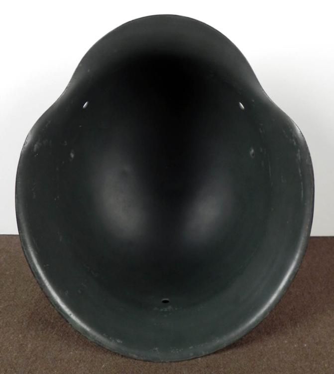 ORIGINAL NAZI M42 COMBAT HELMET, WITH RAW EDGE. IT IS LACKING A LEATHER LINER AND ATTACHMENT RIVETS. "ET64" AND "1624" ARE BOTH STAMPED ON THE INSIDE. THIS HELMET NEEDS YOUR TLC AND A LINER. *