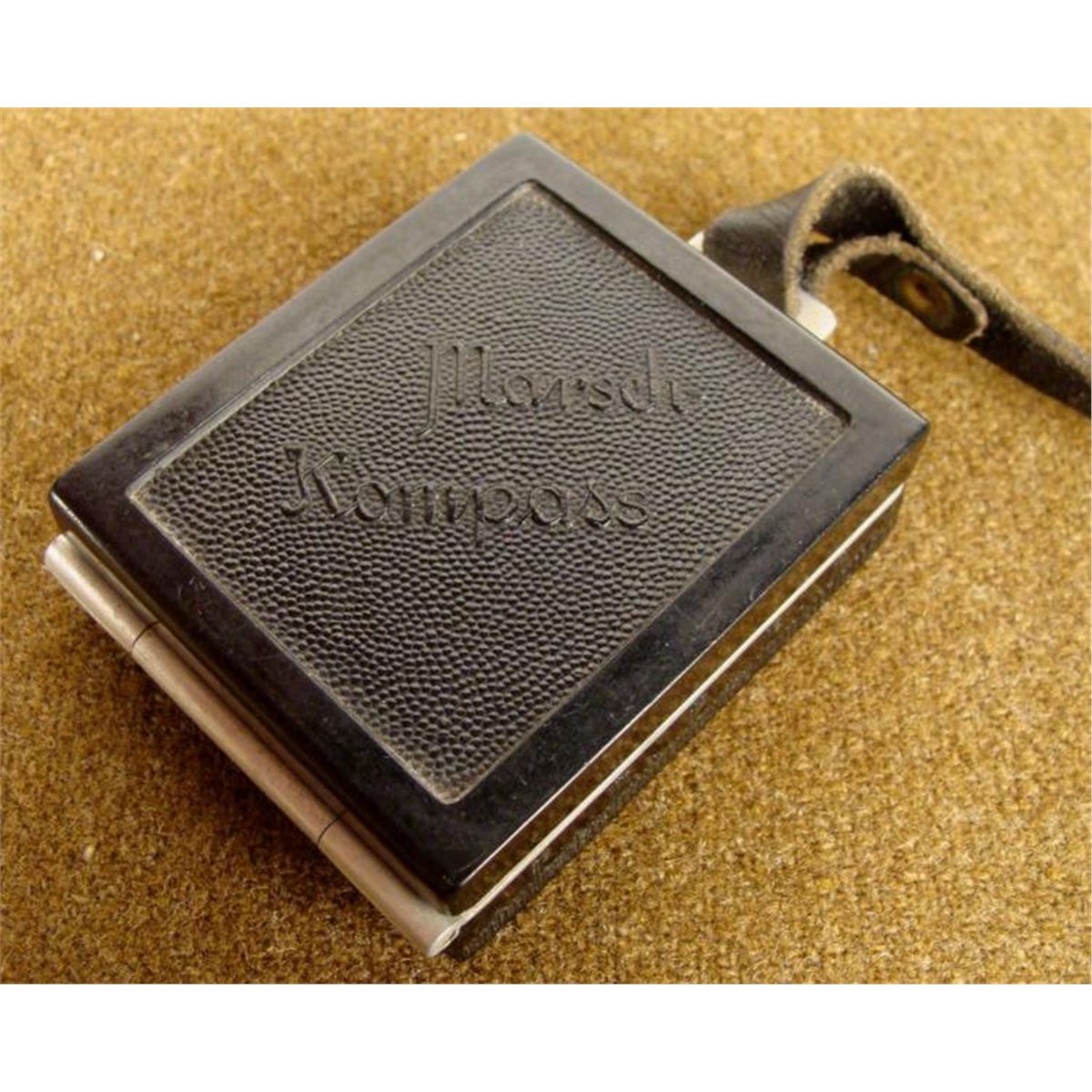 ORIGINAL NAZI MARSCH COMPASS & UNIFORM STRAP-WORKS FINE * SOME FLAKING TO INNER DIAL *