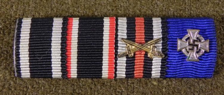 HERE IS AN ORIGINAL NAZI MOUNTED 4 RIBBON BAR-WWI EK-WWII EK--WAR MERIT WITH SWORDS & POLICE MERIT. IT IS MINT CONDITION. IT HAS A WOOL BACKED WITH A LONG PIN *