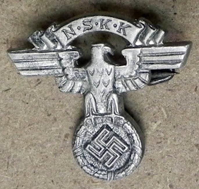 OFFERED HERE IS AN ORIGINAL NAZI NSKK MOTORCYCLE TROOPS MEMBERSHIP PIN. IT HAS A NSKK EAGLE & SWASTIKA WITH NSKK BANNER--REVERSE PINBACK & MARKED "M1/76-RZM".