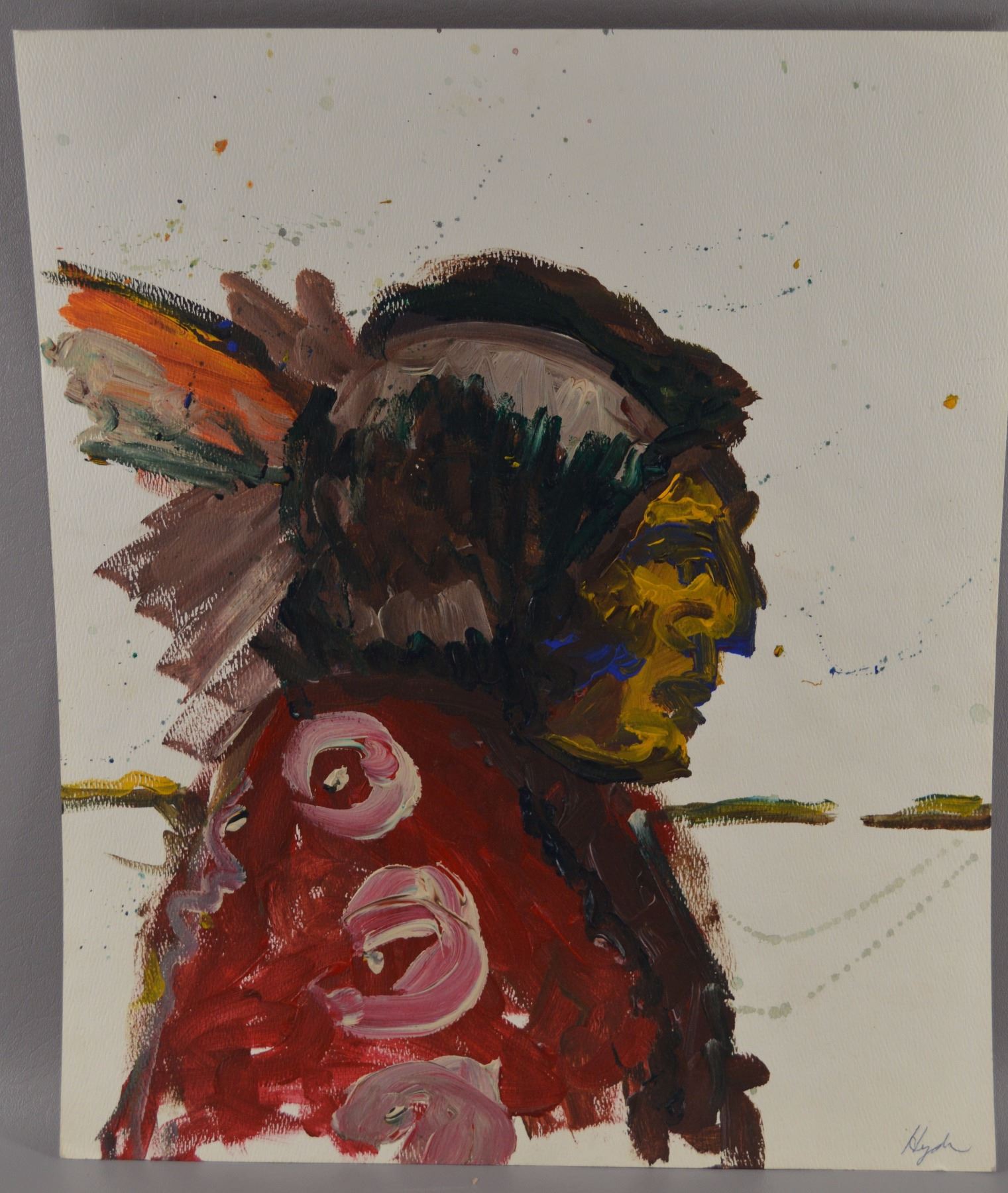Contemporary. Hand painted on paper of Indian profile. Signed Hyde for Frank Buffalo Hyde.