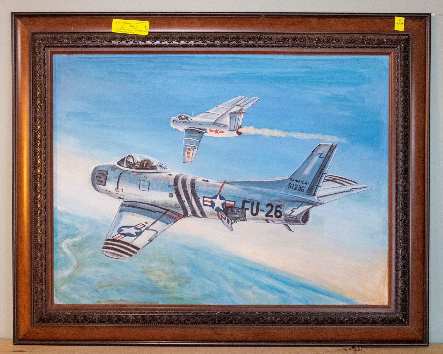 ORIGINAL OIL ON BOARD FIGHTER JET PAINTING 1950S