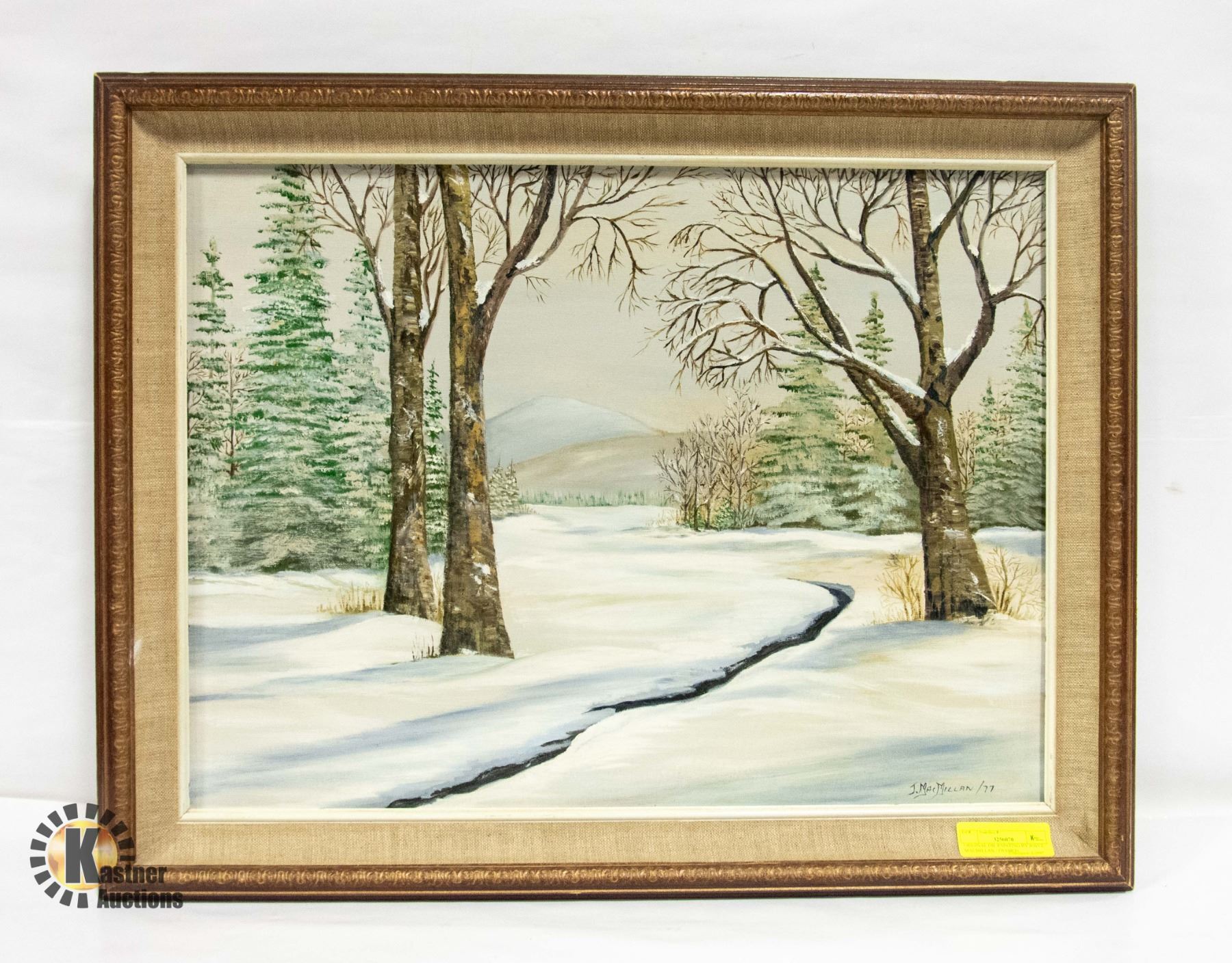SIGNED - 28" x 22" - WINTER SCENE **ALL ITEMS MUST BE REMOVED BY 5PM SATURDAY, SEPTEMBER 21ST 2024. ALL REMAINING ITEMS WILL BE SUBJECT TO A $6.00 PER DAY STORAGE CHARGE. ANY ITEMS REMAINING AFTER MONDAY, OCTOBER 7TH 2024 WILL BE CONSIDERED FORFEITED. NO REFUNDS WILL BE ISSUED FOR FORFEITED ITEMS. TO SCHEDULE A PICK UP APPOINTMENT CLICK HERE