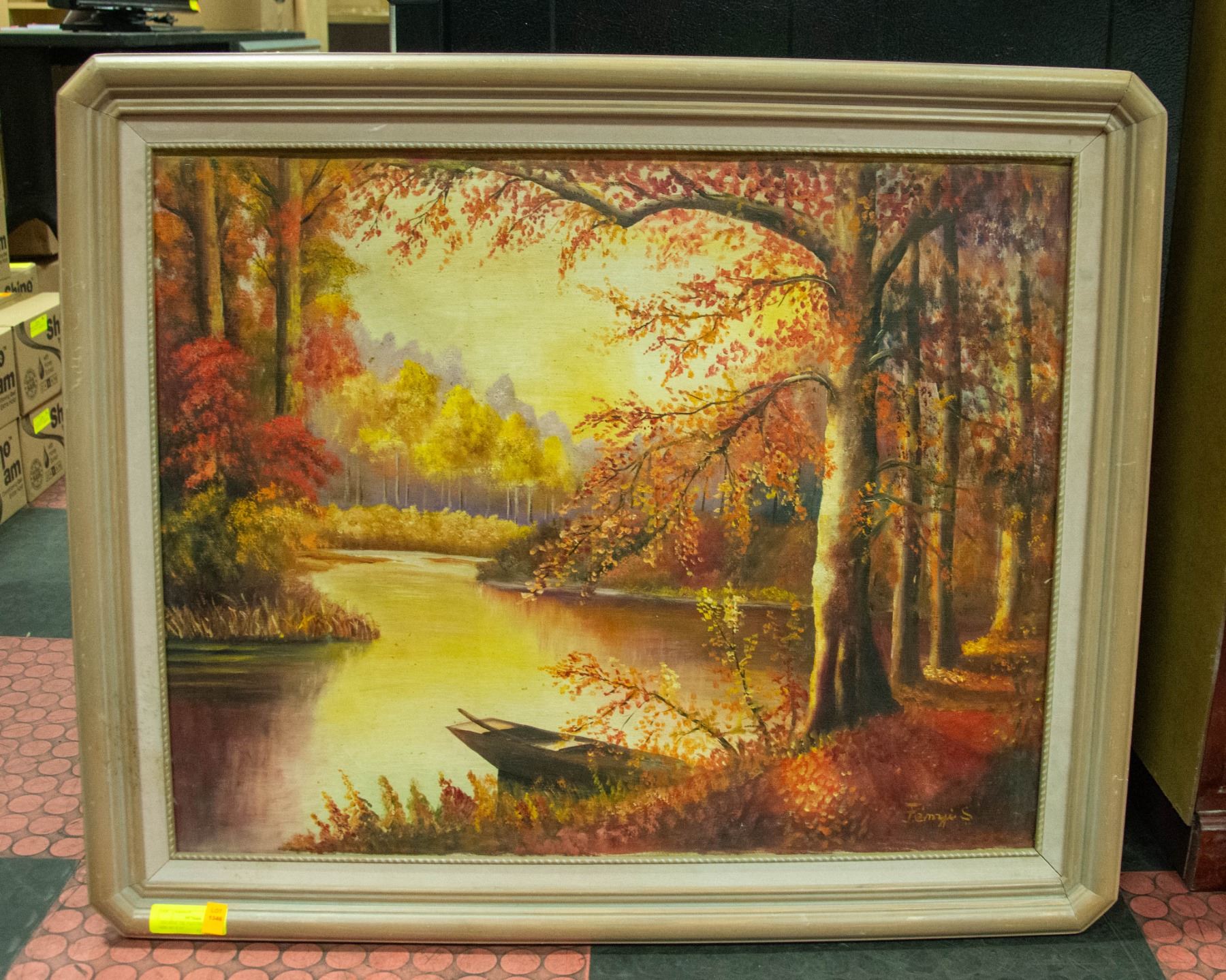 LIGHT WEIGHTED, GOLDEN AUTUMN THEME, BY AMERICAN-SCOTTISH ARTIST. **ALL ITEMS MUST BE REMOVED BY 5PM SATURDAY, SEPTEMBER 28TH 2024. ALL REMAINING ITEMS WILL BE SUBJECT TO A $6.00 PER DAY STORAGE CHARGE. ANY ITEMS REMAINING AFTER MONDAY, OCTOBER 14TH 2024 WILL BE CONSIDERED FORFEITED. NO REFUNDS WILL BE ISSUED FOR FORFEITED ITEMS. TO SCHEDULE A PICK UP APPOINTMENT CLICK HERE
