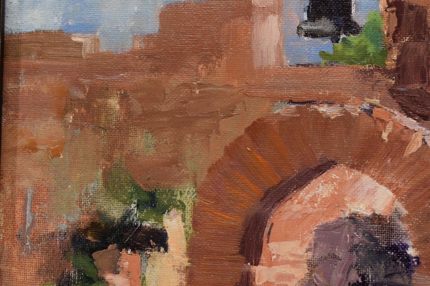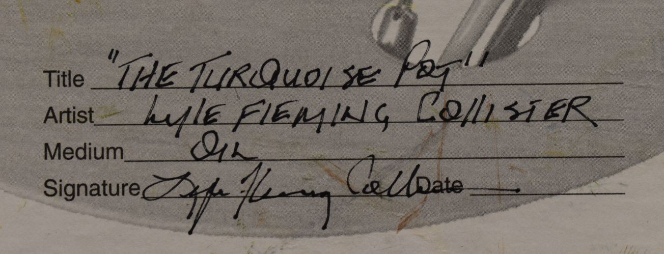 contemporary, original oil on canvas board titled "The Turquoise pot" by Lyle Fleming Collister 16" x 12" framed to 20.5" x 16.5"
