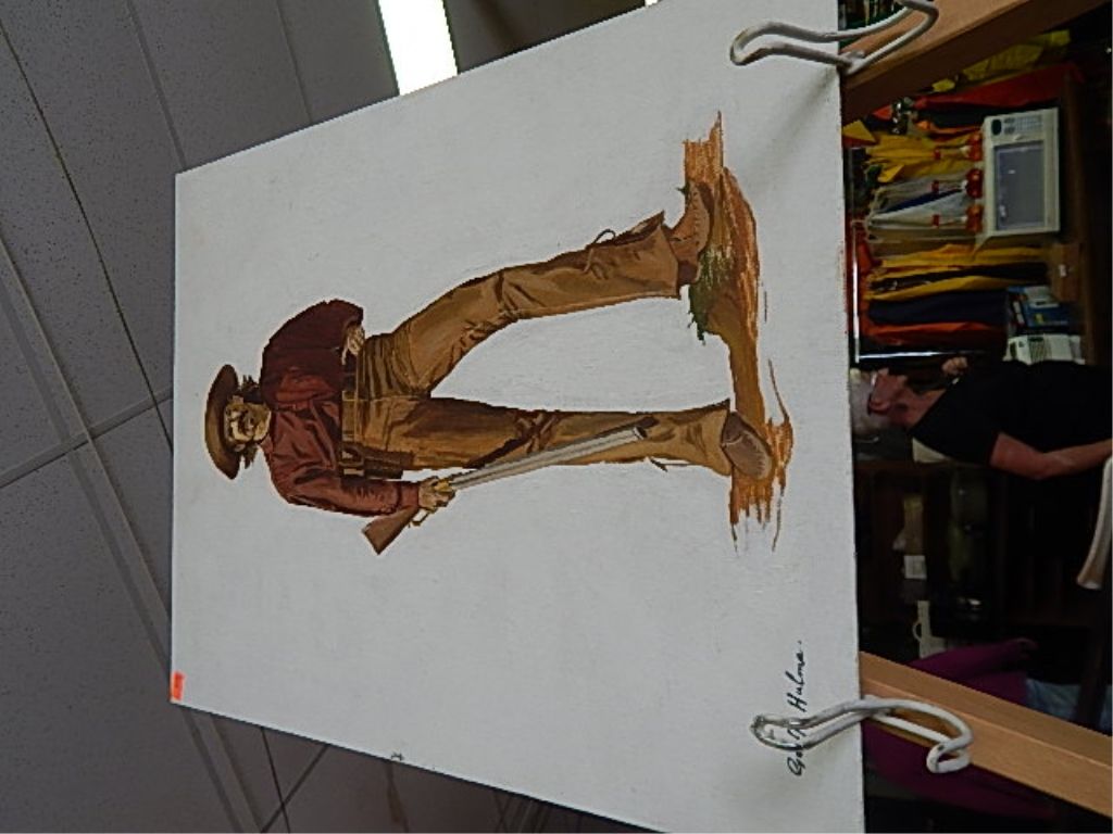 ORIGINAL OIL PAINTING ON BOARD "FRONTIERSMAN" - BY GEOFFERY HULME - 1969